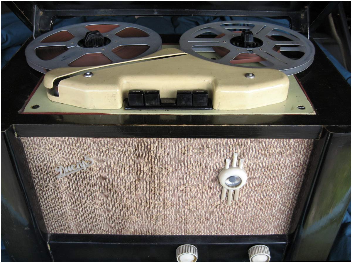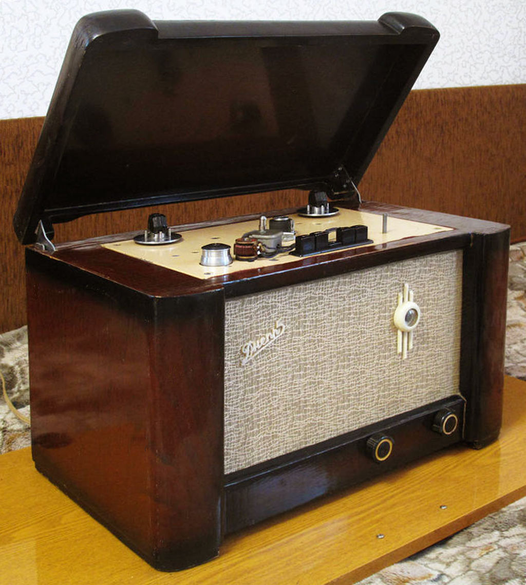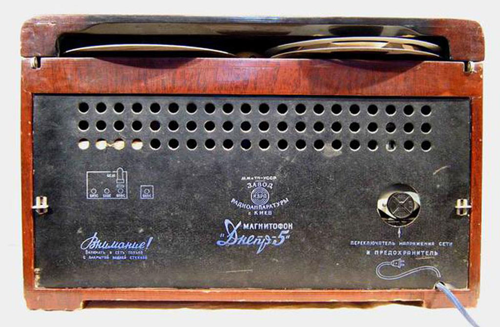 Сетевой катушечный магнитофон *Днепр-5* с 1955 года выпускал Киевский завод радиоаппаратуры. Магнитофон предназначен для записи и (или) проигрывания однодорожечных звуковых фонограмм и рассчитан на магнитную ленту типа 1, 1А или 1Б. Ёмкость рулонов с лентой 500 метров. Скорость протяжки ленты 19,05 см/сек. Продолжительность записи на одной катушке 44 минуты. Магнитофон имеет ускоренную перемотку ленты в обе стороны. Частотный диапазон канала записи-воспроизведения 100...5000 Гц. КНИ - 5%. Чувствительность 2 мВ при записи от микрофона, 200 мВ от звукоснимателя и 10 В со входа для радиолинии. Номинальная выходная мощность 3 Вт, максимальная 5 Вт. Коэффициент детонации 0,6%. Потребляемая мощность 100 Вт. Размеры магнитофона - 518х315х330 мм. Его масса 28 кг.