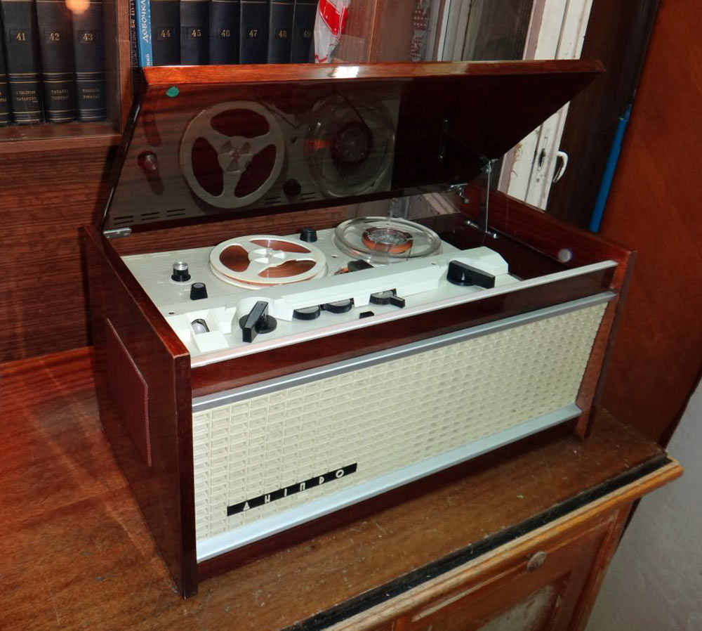 Магнитофон *Днiпро-14А* с осени 1968 года установочной партией около 200 экземпляров выпущен Киевским заводом *Маяк*. Планировали выпустить 75 тысяч магнитофонов, но по разного рода причинам этого не случилось. С 1969 года начался уже массовый выпуск магнитофона. Магнитофон *Днiпро-14А* рассчитан на двухдорожечную запись с микрофона, звукоснимателя, радиоприёмника, телевизора, другого магнитофона или радиолинии. Скорость движения магнитной ленты 9,53 см/сек и 4,76 см/сек при девиации 0,3 % и 0,4% соответственно. Длительность записи с катушками № 15 вмещающих 250 метров магнитной ленты типа 6 на большей скорости 2 х 44 минуты, на меньшей 2 х 88 минут. Номинальная выходная мощность около 3 Вт, максимальная более 6 Вт. Диапазон звуковых частот воспроизводимых громкоговорителями на большей скорости - 63...10000 Гц, на меньшей - 63...6300 Гц. Напряжение на линейном выходе 0,25 В. Имеется раздельная регулировка тембров НЧ и ВЧ. В магнитофоне имеется шкала расхода ленты, кнопка наложения записи, дистанционный пуск ЛПМ, переключатель сигналов при записи, кнопка паузы. В ЛПМ стоит три двигателя. Схема выполнена на семи радиолампах, включая оптический индикатор. В АС установлено два громкоговорителя типа 2-ГД-19 спереди и два типа 1ГД-19 по бокам. Питание от электрической сети 127 или 220 В. Габариты модели 620х320х305 мм. Вес 25 кг.