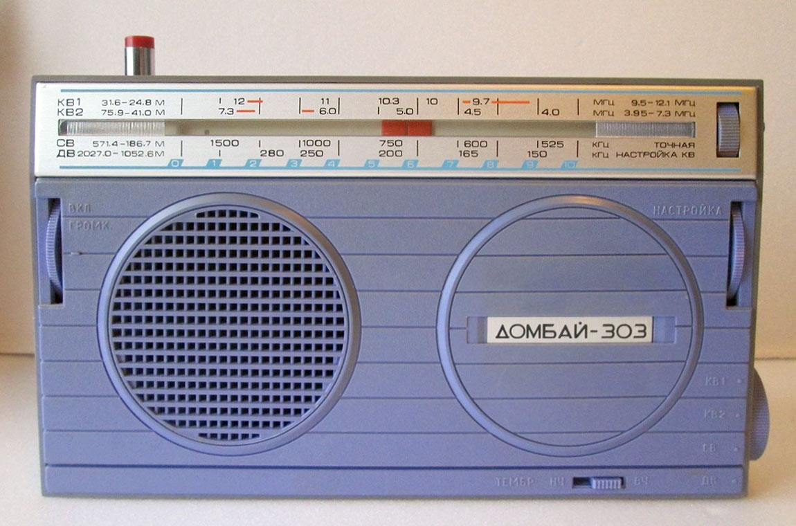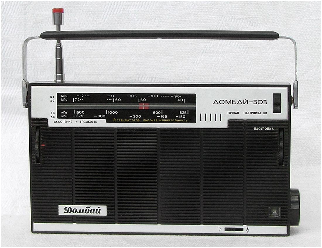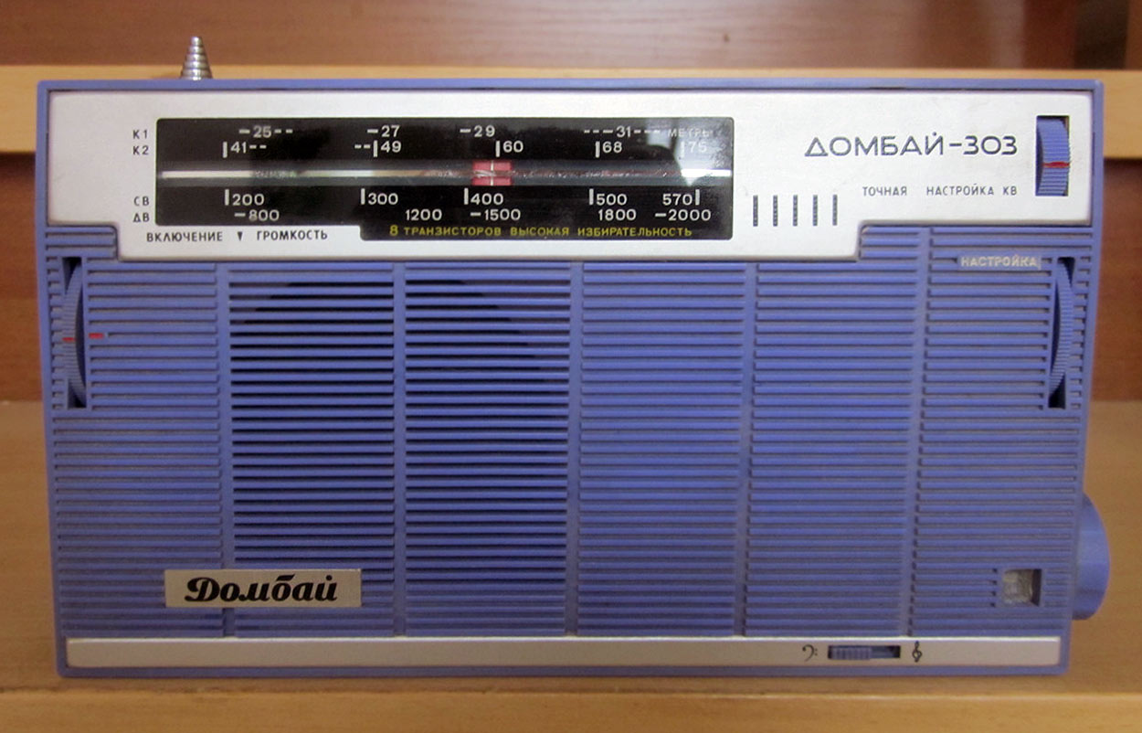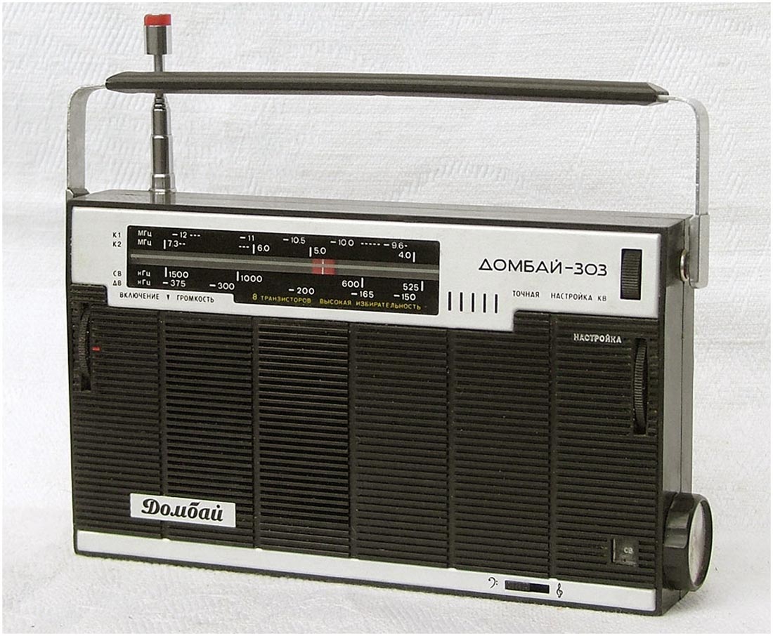 Портативный радиоприёмник *Домбай-303* с 1982 года выпускал Черкесский радиозавод *Полет*. Приёмник выпускался на основе модели **Россия-303**. Первые приёмники не отличались от базового, затем было изменено их оформление и применена более современная элементная база. Приёмник рассчитан на приём в диапазонах ДВ, СВ и двух поддиапазонах КВ. Имеется ступенчатая регулировка тембра ВЧ, точная подстройка частоты в поддиапазонах КВ. Работает приёмник на громкоговоритель 0,5ГД-30. Питание от четырёх элементов А-316. Чувствительность в диапазонах ДВ - 2,1мВ/м, СВ - 1,2 мВм, поддиапазонах КВ - 450 мкВ. Избирательность по соседнему каналу 36 дБ. Номинальная выходная мощность 0,2 Вт. Диапазон воспроизводимых частот 250...3550 Гц. Габариты приёмника 215х195х65 мм. Масса 1,5 кг. С 1985 года завод выпускал радиоприёмник **Домбай-303-1**. С 1986 года приёмник *Домбай-203* (*Домбай РП-203*), а с 1987 года *Домбай РП-203-1*. Новые модели не отличались друг от друга по конструкции и схеме, а вот оформление было самым разным, в том числе и в цветовой гамме. С 1986 года в наименовании радиоприёмников добавились буквы РП, *Домбай РП-203* и *Домбай РП-203-1*, что было связано с новым ГОСТом. Статья на сайте Li-ne.ru Домбай РП-203Россия-303 (выпуска 1974г)Россия-303 (выпуска 1985г)Россия-303 (выпуска 1987г)