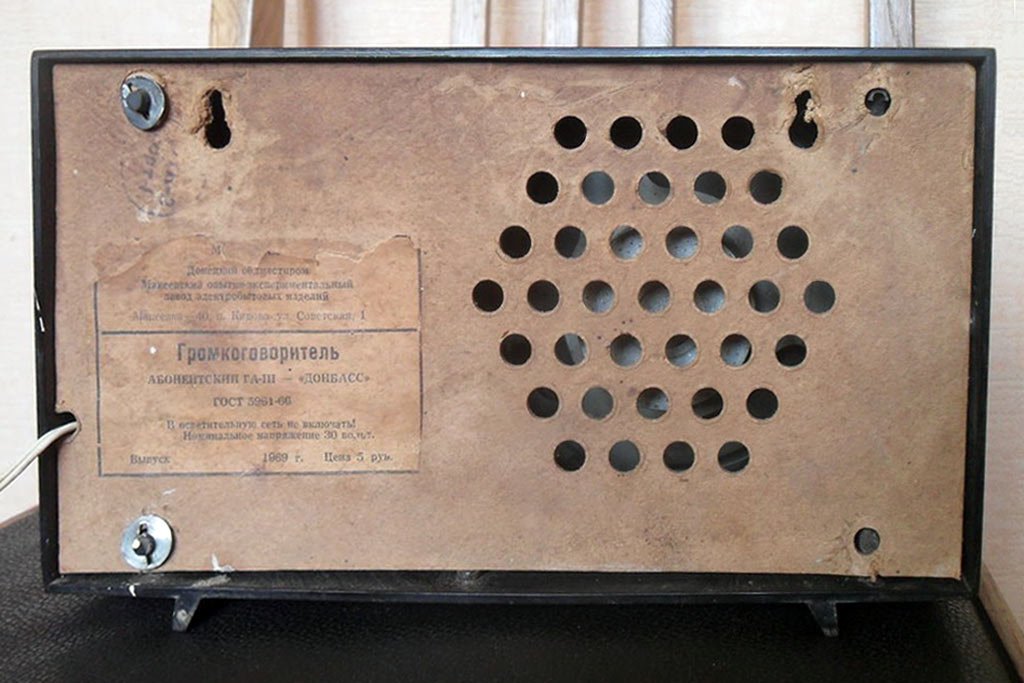 Абонентский громкоговоритель "Донбасс" предположительно с 1969 года выпускал Макеевский завод электробытовых изделий "Импульс" и ещё один неустановленный завод. Громкоговоритель предназначен для воспроизведения радиопрограммы проводного трансляционного вещания, с напряжением в линии 30 В. Диапазон воспроизводимых частот звука - 160..5000 Гц. Габариты громкоговорителя 260х150х74 мм. Масса 1,1 кг.