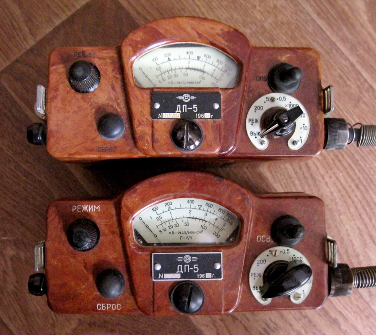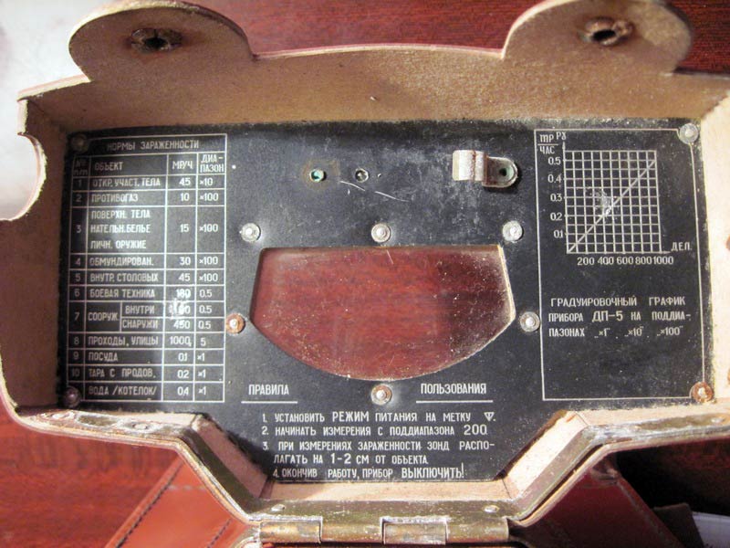 Полевой радиометр-рентгенметр *ДП-5* (ПРР-1) выпускался предположительно с 1963 года. Предназначен для обнаружения и количественного определения бета-заражённости поверхности различных предметов, а также для обнаружения и измерения уровней гамма-радиации. Прибор имеет семь поддиапазонов измерений: 1-й поддиапазон от 5 до 200 Р/ч. 2-й от 0,5 до 5 Р/ч. 3-й от 0,05 до 0,5 Р/ч. 4-й от 100000 до 1000000 расп/мин. см2. 5-й от 10000 до 100000 расп/мин. см2. 6-й от 1000 до 10000 расп/мин. см2. 7-й от 100 до 1000 расп/мин. см2. В интернете прибор описан во всех подробностях. Фотографии прибора с сайта: http://forum.rhbz.org/