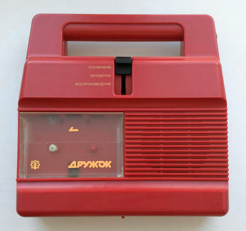 Детский магнитофон-игрушка *Дружок* с начала 1988 года выпускал Каменск-Уральский ПСЗ. Предназначен для приобретения детьми школьного возраста навыков обращения с бытовой аппаратурой, развития музыкальных способностей и технических познаний. Позволяет воспроизводить фонограммы, записанные на компакт кассетах МК-60. В магнитофоне имеется 4 положения переключателя рода работ: воспроизведение, перемотка вперед, стоп и выключение, а так же откидывание крышки и выброс кассеты. Аппарат работает от сети через внешний БП или от 6 батарей 343. Номинальная выходная мощность 1 Вт. Диапазон частот 200...7000 Гц. Продолжительность работы от батарей около 10 часов. Габариты модели 230х225х60 мм. Вес с батареями 1,5 кг. Цена 60 рублей. Корпус из ударопрочного цветного полистирола. С 1995 года завод выпускал магнитофон-игрушку *Дружок-М* впрочем, по схеме, конструкции и оформлению ничем не отличавшийся от описанного.