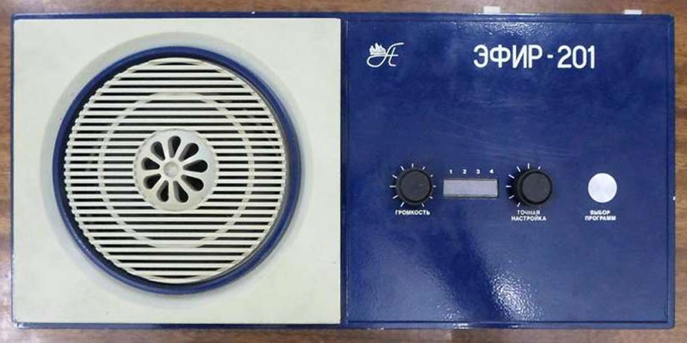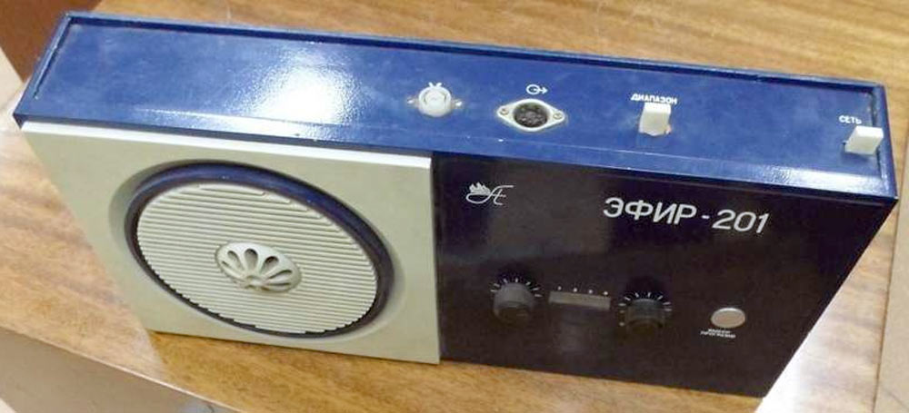 Стационарный транзисторный радиоприёмник *Эфир-201* с осени 1993 года выпускал НПФ *Гефест* (Негосударственный пенсионный фонд ”Гефест”). Понятно что приёмник производился по заказу НПФ, а вот где неустановлено. Радиоприёмник работает в двух диапазонах УКВ, 65...75 МГц и 87..108 МГц. В любом диапазоне имеется фиксированная настройка на 4 радиостанции. Переключение заранее настроенных программ радиовещательных станций - сенсорное. ВЧ часть приёмника собрана на многофункциональной микросхеме КХА-058, НЧ часть на К174УН7. Чувствительность приёмника в НЧ диапазоне 10 мкВ, в ВЧ около 2 мкВ. Номинальная выходная мощность 1,5 Вт. Диапазон звуковых частот 80...10000 Гц. Питание от электрической сети 220 вольт. Потребляемая мощность 5 Вт. Габариты приёмника 370х170х70мм.