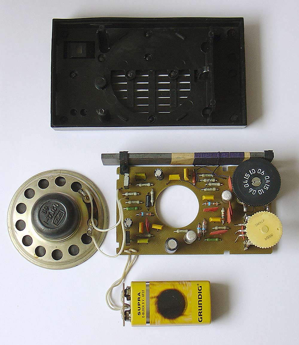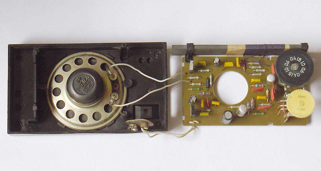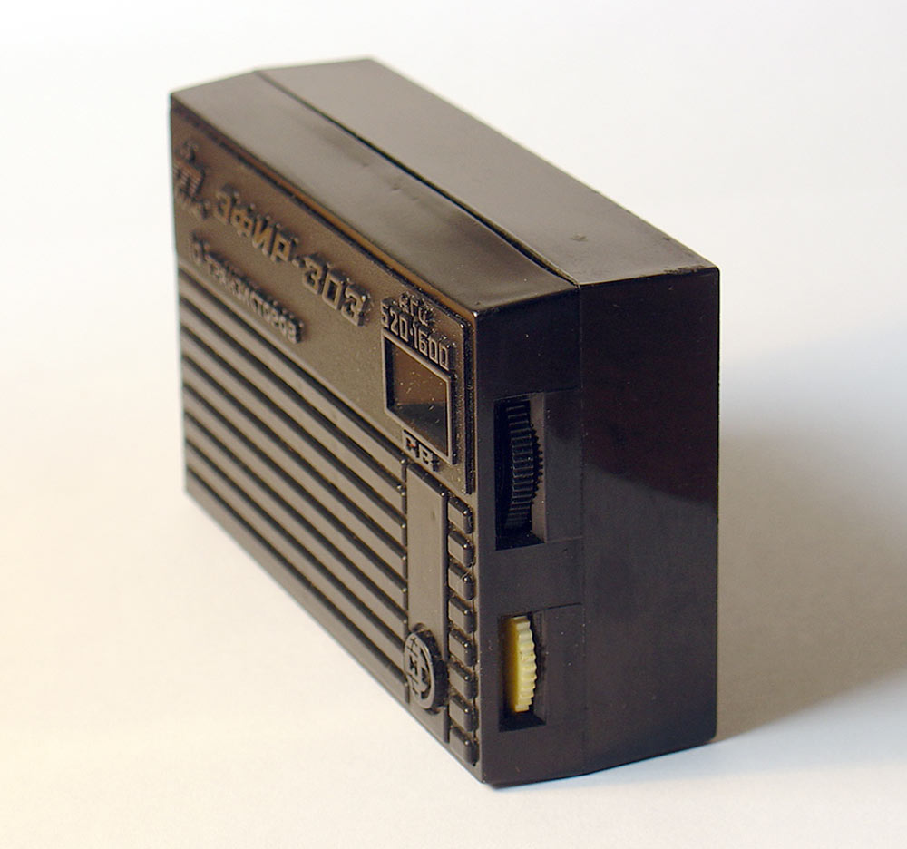 Радиоприёмник *Эфир-303* из радиоконструктора с начала 1991 года выпускал Первый Московский приборостроительный завод. Детский радиоприёмник игрушка **Эфир-303** предназначен для начинающих радиолюбителей и детей в возрасте от 10 лет. Приёмник представляет собой набор радиодеталей и компонентов для сборки действующего радиоприёмника прямого усиления. Цена набора РК 11 рублей. Завод выпускал и собранный радиоприёмник (на фото). Его цена 13 рублей. По конструкциии построению электрической схемы и техническим параметрам приёмник схож с другими моделями этого же завода серии **Юность КП**, но электрическая схема не совпадает ни с одной.