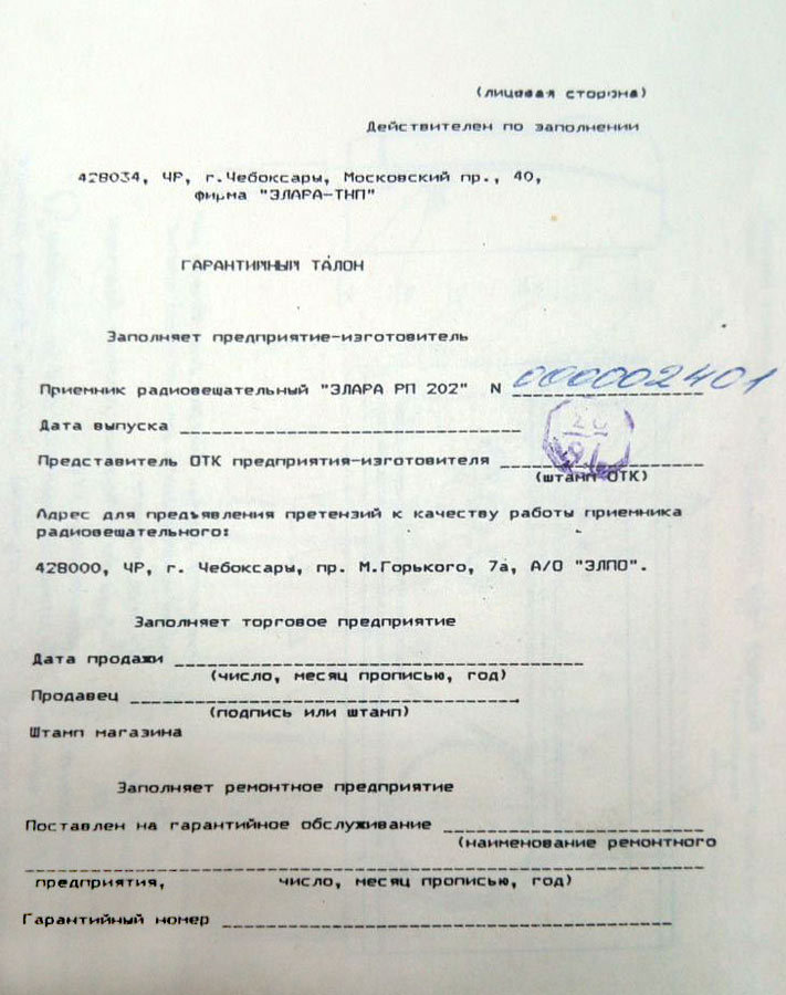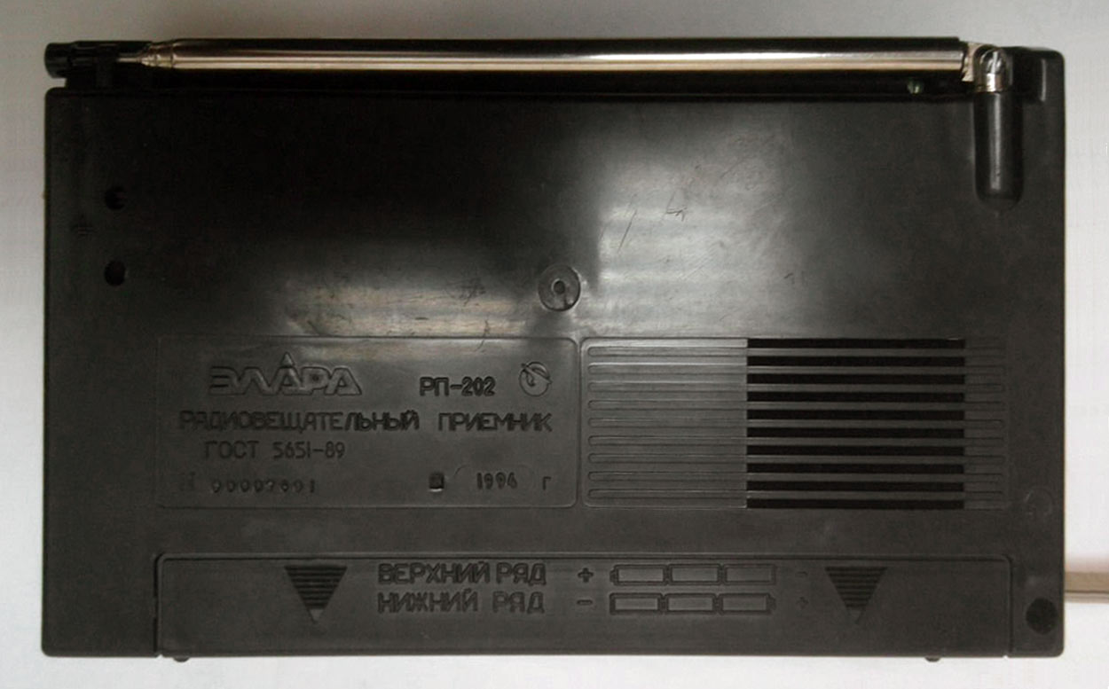 Приёмник радиовещательный *Элара РП-202* выпускался с 1994 года Чебоксарской фирмой *Элара-ТНП* (Чувашская республика). Приёмник работает в диапазонах КВ-1 - 19 метров, КВ-2 - 25 метров, УКВ-1 - 64...75 МГц, УКВ-2 - 98...112 МГц, а так же принимает звуковое сопровождение в низкочастотном телевизионном диапазоне с 1 по 5 канал. Питается приёмник от 6-ти батарей типа *А-343* или от сети переменного тока через выносной блок питания. Управление диапазонами - кнопочное. Номинальная выходная мощность 0,5 Вт, максимальная 1,2 Вт. Диапазон частот, воспроизводимых при приёме в диапазонах УКВ и в телевизионном диапазоне - 150...5000 Гц. Другой информации пока нет.