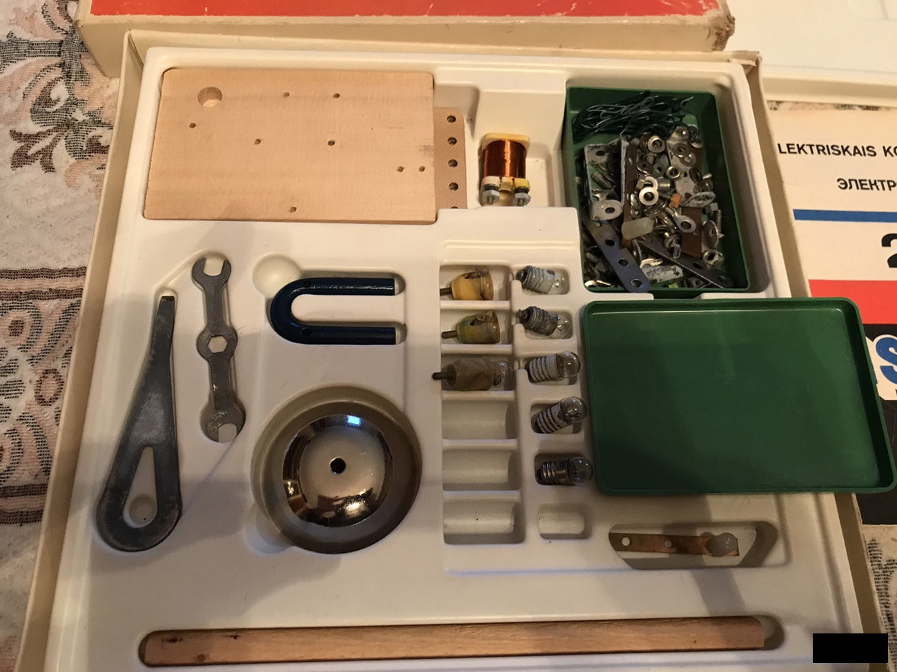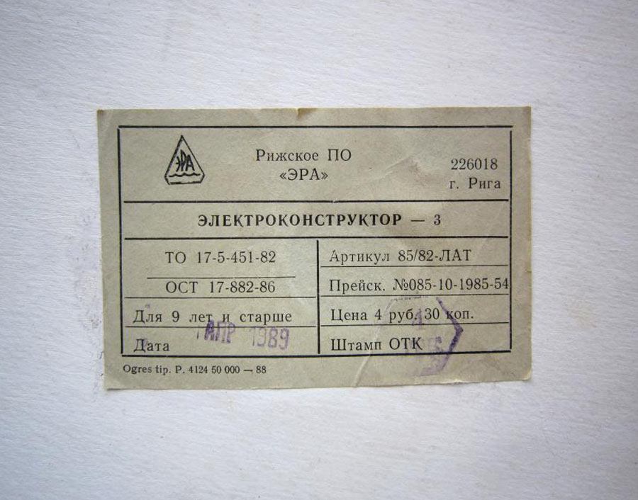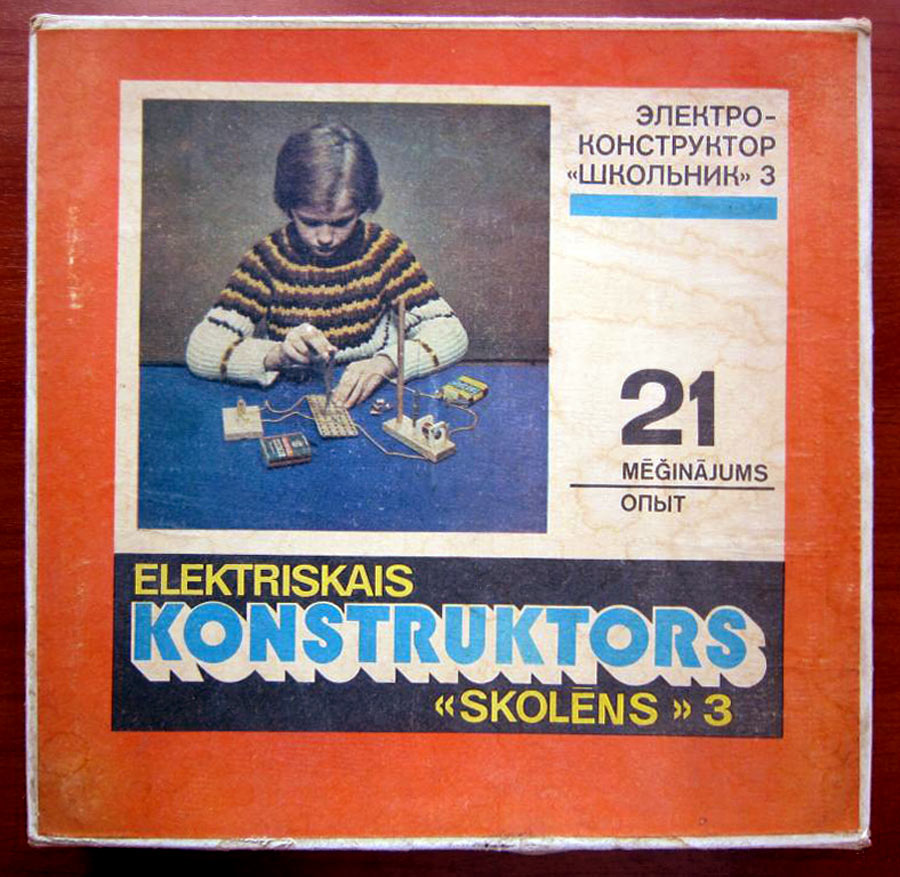 Электроконструктор *Школьник-3* выпускался предположительно с 1988 года Рижским ПО *Эра*. Электроконструктор позволяет провести 21 опыт.