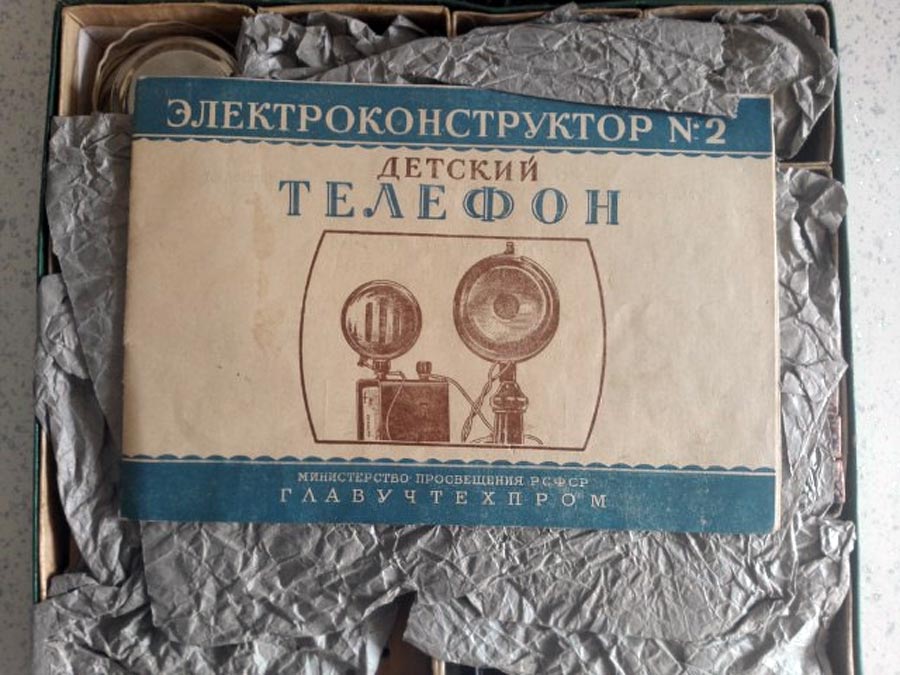 Электроконструктор №2 *Детский телефон* выпускался возможно с 1951 года Московским заводом *Физэлектроприбор*. Конструктор выпускался более 15 лет.