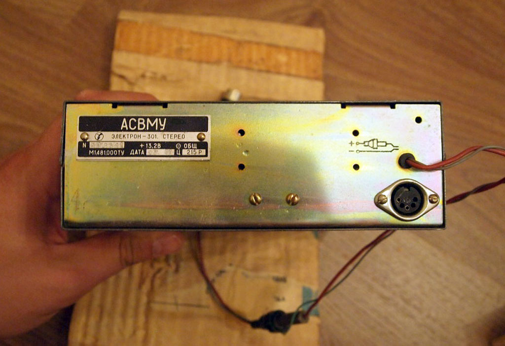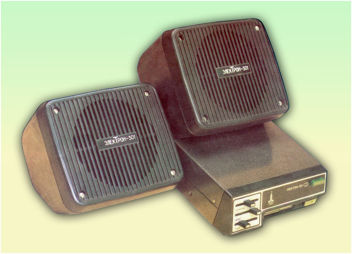 Автомобильное стереофоническое воспроизводящее магнитофонное устройство (АСВМУ) *Электрон-301-стерео* с 1980 года выпускал Завод НПО *Ани*, Ереван. АСВМУ рассчитано на эксплуатацию в легковых автомобилях. От выпрямителя с напряжением 13,2 вольт его можно использовать и в доме. Скорость магнитной ленты 4,76 см/сек. Коэффициент детонации ±0,35%. Рабочий диапазон частот звука 63...10000 Гц. Номинальная выходная мощность 2х2 Вт, потребляемая 16 Вт. Относительный уровень шумов -46 дБ. Размеры устройства 205x172x58 мм. Размеры одной акустической системы 166x125x101 мм. Вес устройства 2 кг. Одной АС - 1,5 кг. Цена АСВМУ 215 рублей.