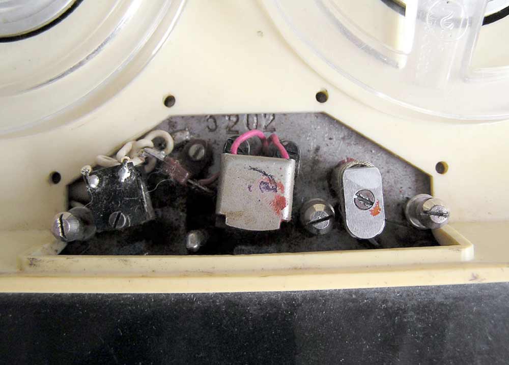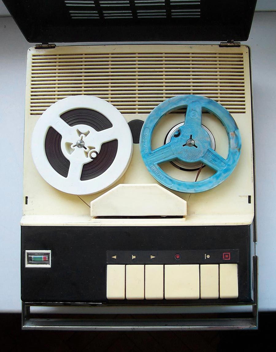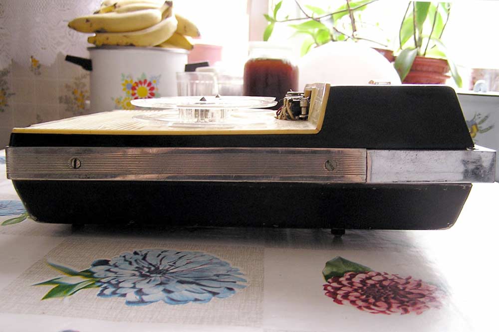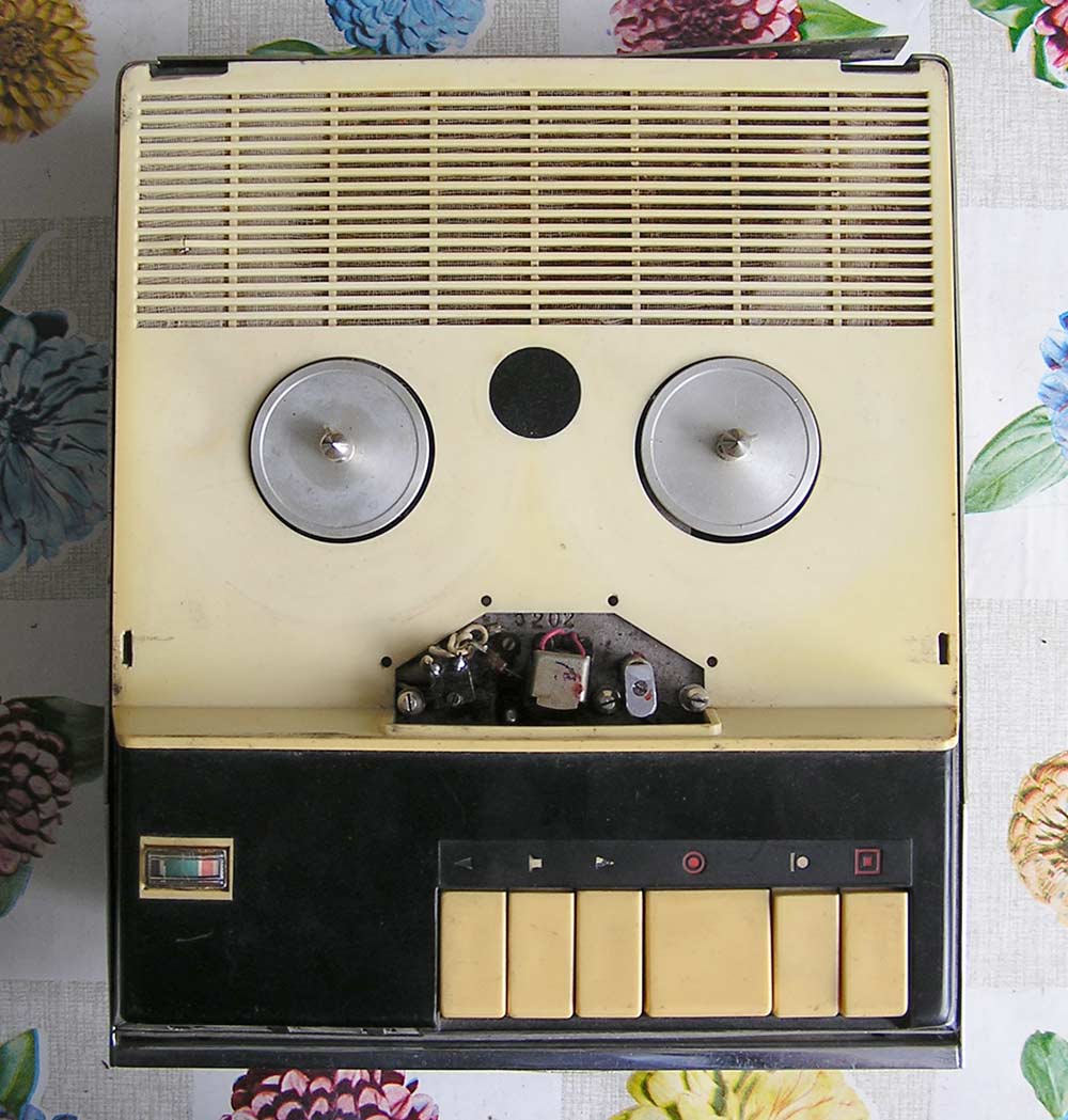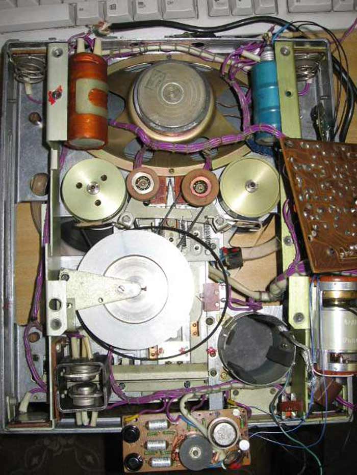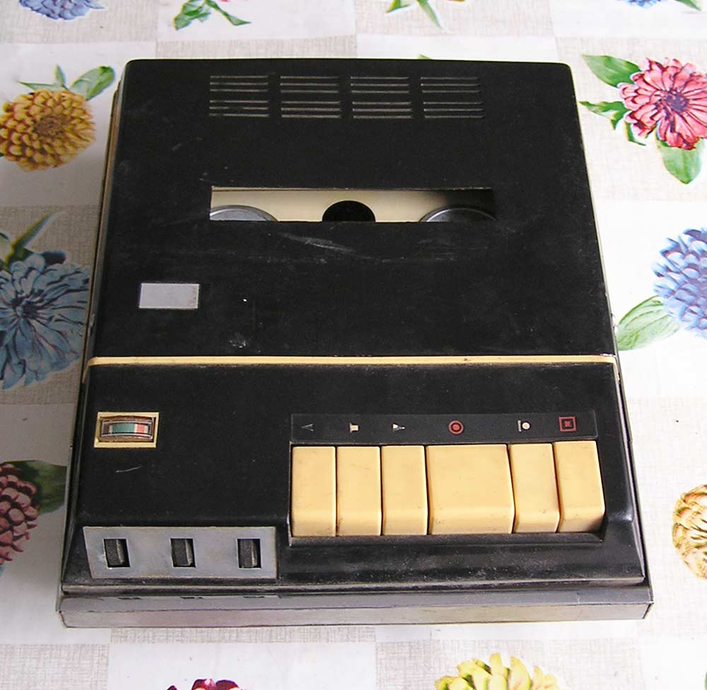 Портативный катушечный магнитофон *Электрон* выпускал с 1969 года Московский приборный завод. Магнитофон создан на базе любительского магнитофона *Электрон-4*, который экспонировался на 21-й Всесоюзной выставке творчества радиолюбителей-конструкторов 1968 года в Москве, был удостоен диплома первой степени и рекомендован для серийного производства. Магнитофон *Электрон* предназначен для записи и последующего воспроизведения фонограм на скорости 9,53 см/сек. Катушки вмещают 100 м. магнитной ленты типа 10. Полоса рабочих частот на ЛВ - 63...10000 Гц. Коэффициент детонации ЛПМ - 0,4%. Номинальная выходная мощность от батарей 0,5 Вт, от сети 1 Вт. Габариты магнитофона 283х290х100 мм, масса с батареями питания и лентой 4,7 кг. С 1972 года завод начал выпуск четырёхдорожечного магнитофона *Электрон-302*, который кроме других головок, переключателя дорожек и соответственно большего времени записи, по конструкции и виду не отличался от базового. Аппараты комплектовались приставкой, в которую входил блок питания от сети и дополнительный громкоговоритель.