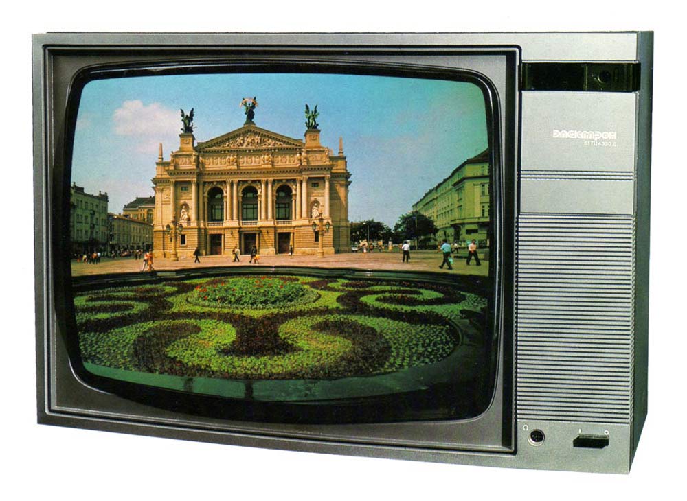 Телевизионный приёмник цветного изображения *Электрон 61ТЦ-433Д* с начала 1988 года выпускало Львовское ПО *Электрон*. Телевизор **Электрон 61ТЦ-433Д** предназначен для приёма передач цветного и ч/б изображения в МВ и ДМВ диапазонах по системам ПАЛ/СЕКАМ. В телевизоре использованы: кинескоп с самосведением, размером диагонали экрана 61 см и углом отклонения лучей 90°, восьмипозиционное сенсорное устройство для выбора программ с цифровой индикацией; беспроводное ДУ; импульсный блок питания позволяющий обходиться без стабилизатора напряжения для сети. Кнопочное управление основными регулировками осуществляется с передней панели телевизора. Отличительной особенностью аппарата является применение модульного шасси и беспроводного дистанционного управления на ик лучах, позволяющего включать или выключать телевизор, регулировать контрастность, насыщенность, громкость и переключать телепрограммы. Потребляемая мощность 85 Вт. Чувствительность в МВ 40, ДМВ 70 мкВ. Дальность ПДУ - 6 м. Габариты телевизора 500х700х515. Вес 32 кг.
