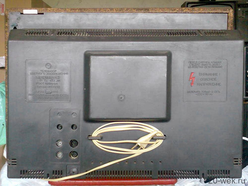 Цветной телевизор "Электрон 51ТЦ-433Д" с 1987 года выпускало Львовское ПО "Электрон". Цветной полупроводниково-интегральный телевизор ''Электрон 51ТЦ-433Д'' кассетно-модульной конструкции выполнен на основе моношасси с семью модулями: управления, радиоканала, строчной и кадровой разверток, цветности, дежурного режима и питания. Кинескоп 51ЛК2Ц с самосведением и углом отклонения лучей 90°. В телевизоре имеется: сенсорное устройство выбора программ, сенсорное устройство управление яркостью, контрастностью, насыщенностью, громкостью, включением и выключением. Имеется так же автоматический поиск каналов и автоматическое запоминание частоты настройки с цифровой индикацией выбранной программы. Имеется блокировка звука при отсутствии телевизионного сигнала. Приём программ возможен в диапазонах МВ и ДМВ. Есть гнёзда подключения видеомагнитофона, магнитофона, головных телефонов. Есть функция автоматического выключения телевизора по окончании передач. Имеется пульт для беспроводного дистанционного управления на инфракрасных лучах с 20 управляющими функциями, бестрансформаторный блок питания, позволяющий эксплуатировать телевизор без применения дополнительной стабилизации напряжения электрической сети, автоматическое опознавание и обработка ТВ сигналов, передаваемых по системам ПАЛ или СЕКАМ. Корпус модели облицован декоративной отделочной пленкой. Потребляемая мощность 85 Вт. Габаритные размеры 621х449х460 мм, масса 24,5 кг. В этом же году выпускался телевизор и с наименованием ''Электрон 51ТЦ-4330Д'', ничем не отличавшийся от описанного. С 1988 года завод выпускал большие телевизоры "Электрон 61ТЦ-433Д" и "Электрон 67ТЦ-433Д" по схеме и конструкции аналогичные модели "Электрон 51ТЦ-433Д".