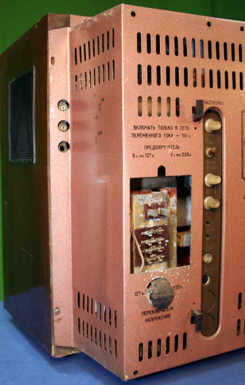 Унифицированный цветной телевизор *Электрон-703/Д* (тип УЛПЦТ-59-II-1) с 1972 года выпускал Львовский телевизионный завод. Телевизор работает в МВ и ДМВ диапазоне (после установки СКД-1), а в модели с индексом **Д** блок уже установлен. Высокая чувствительность с АРУ позволяет вести устойчивый приём на удалении от студии. Система АПЧГ исключает подстройки при переключении каналов. Для правильного воспроизведения цвета ручки насыщенности и контрастности сдвоены. Ручки под-насыщенности и цветового тона позволяют изменять цветовую насыщенность и окраску картинки. При приёме ч/б изображения автоматически отключаются режекторные фильтры. Уменьшение влияния помех достигается схемой АПЧ и Ф. В ТВ имеется автоматическое поддержание размеров изображения и напряжения на втором аноде кинескопа при небольших колебаниях напряжения в сети, а также автоматическое размагничивание кинескопа при включении. Применена подсветка номера канала шкалы ДМВ диапазона. Телевизор собран из законченных блоков, соединённых разъёмами. Есть гнёзда для подключения магнитофона на запись звука, прослушивание его на головные телефоны при отключенной АС и возможность установки проводного ПДУ. Габариты аппарата 775х550х550 мм. Вес 65 кг. Выпускался телевизор в настольном исполнении в деревянном футляре, облицованном ценными породами дерева.