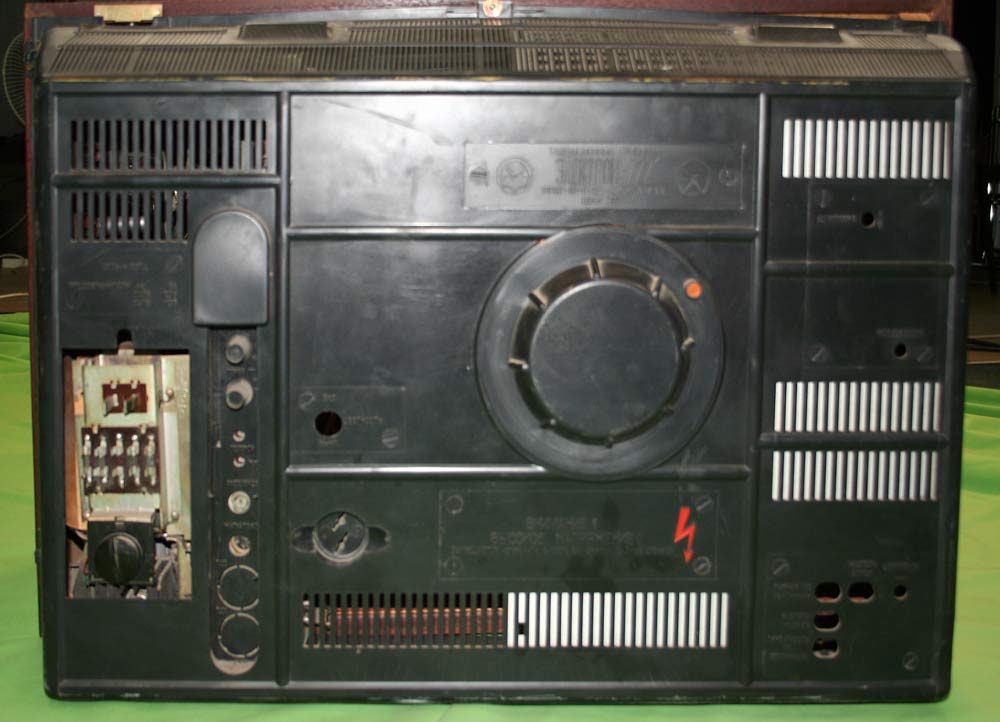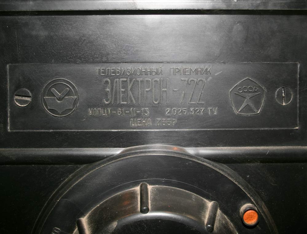 Телевизионный приёмник цветного изображения *Электрон-722/Д* с I-кв 1979 года выпускал Львовский телевизионный завод. Унифицированный лампово-полупроводниковый цветной телевизор 2-го класса **Электрон-722/Д** предназначен для приёма программ телевизионных станций в МВ, а с индексом **Д** и в ДМВ диапазоне волн. Телевизор выполнен на основе унифицированной модели УЛПЦТ-61-II-13. В телевизоре используется ряд новых узлов: сенсорный блок выбора программ СВП-4, блоки радиоканала БРК-З, цветности БЦ-З и селекторов каналов в МВ (блок СКМ-23) и ДМВ (блок СКД-22) диапазонах. В небольшой партии телевизоров использованы другие селекторы. Тракт звукового сопровождения ТВ работает на две встроенные динамические головки 2ГД-36 и 3ГД-38Е. Номинальная выходная мощность 2,5 Вт. Диапазон воспроизводимых частот - 63...12500 Гц. Габариты модели 775х560х650 мм, его вес без упаковки 66 кг. Розничная цена телевизора 755 рублей, телевизора с индексом **Д** - 780 рублей.