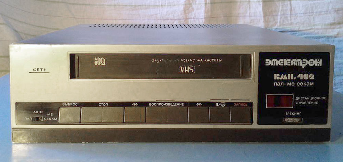 Видеомагнитофон *Электрон ВМЦ-402* создан в 1990 году Львовским ПО имени Ленина. В серийное производство не пошёл. http://rt20.mybb2.ru/