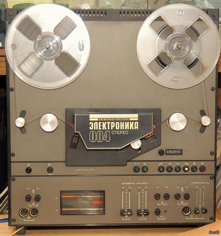 Магнитофон-приставка *Электроника-004* с 1983 года выпускал Фрязинский завод *Рений* в составе НПО *Исток*. Реверсивный 4-х дорожечный двухскоростной стереофонический МП высшей группы сложности, предназначенный для высококачественной записи речевых и музыкальных программ на ленту А4409-6Б с последующим или одновременным их воспроизведением через внешний, стереоусилитель с АС и на головные стереотелефоны. Скорость движения ленты 19,05; 9,53 см/с. Рабочий диапазон частот на линейном выходе: на скорости 19,05 см/с не уже 31,5...22000 Гц, на скорости 9,53 см/с; не уже 31,5...16000 Гц. Потребляемая мощность 130 Вт. Габариты МП 495x458x220 мм. Масса 27 кг. Позднее Киевский завод *Генератор* и Саратовский экспериментальный завод прецизионного оборудования выпускали аналогичные МП с названиями *Электроника-004К* и *Электроника-004С*. Фрязинский завод *Рений* с 1984 года на базе МП *Электроника-004* выпускал многоканальный регистратор оперативной диспетчерской связи с наименованием *Электроника-004Д*.