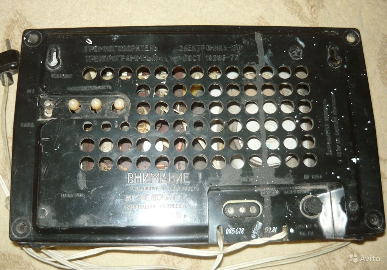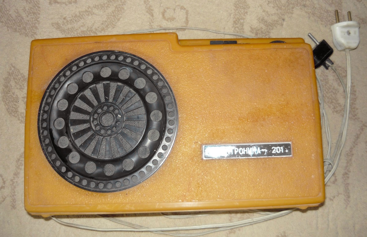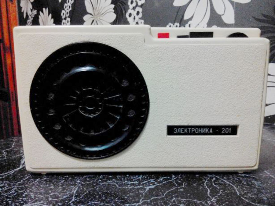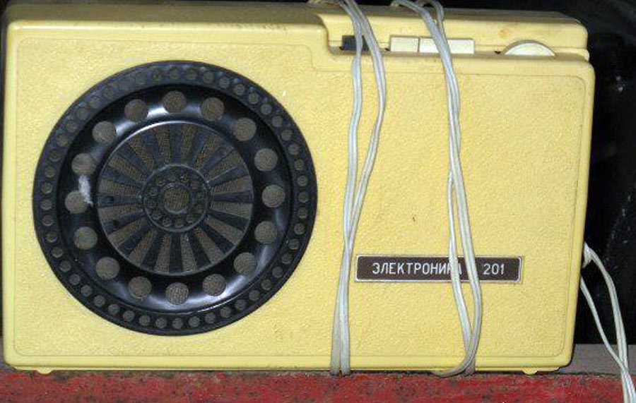 Приёмник трёхпрограммный *Электроника-201* с 1978 года выпускал Ставропольский завод *Изумруд*. ПТ предназначен для работы от радиосети трехпрограммного проводного вещания с напряжением 30 вольт. ПТ позволяет воспроизводить передачи первой программы по дополнительному НЧ каналу без усиления. Диапазон воспроизводимых частот низкочастотной программы 100...10000 Гц. Номинальная выходная мощность 200 мВт. Питание от электрической сети 220 В. Потребляемая мощность 4 Вт. Габариты ПТ - 310х190х83 мм. Вес 3 кг.