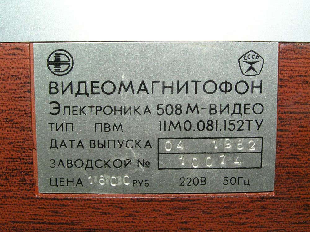 Бытовой цветной катушечный видеомагнитофон *Электроника-508М-видео* с начала 1982 года выпускал Воронежское ПО *Электроника*. Предыдущий ВМ *Электроника-508-видео* начали производить в 1979 году, и отличался он конструкцией БВГ, которую ставили еще в первые бытовые ч/б ВМ *Электроника-видео ВМП-1* и *Электроника-501-видео* (1974 год). Эти ВМ в свою очередь были копией японского видеомагнитофона *Sony AV-3400* (1969 год). Новый видеомагнитофон *Электроника-508М-видео* обеспечивает: запись ч/б и цветного видео с телевизора. Система цветности СЕКАМ-3Б. Запись ч/б видео при помощи видеокамеры *Электроника-видео*. Воспроизведение видео на цветном или ч/б телевизоре. Запись звука с микрофона. Прослушивание звука через наушник. Перемотку ленты в обоих направлениях. Стирание записи. Воспроизведение записей, сделанных на других видеомагнитофонах данного типа. Питание от сети. Система записи наклонно-строчная двумя вращающимися видеоголовками. Время записи 45 минут. Время перемотки около 5 мин. Диапазон рабочих звуковых частот 80...10000 Гц. Габариты видеомагнитофона 425х375х202 мм. Вес 15 кг.