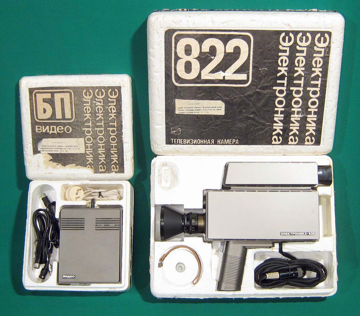 Телевизионная ч/б видеокамера *Электроника-822* выпускалась с начала 1986 года. ТВ видеокамера *Электроника-822* предназначена для работы с видеомагнитофоном *Электроника ВМ-12* и любым другим, а также непосредственно с любым ч/б или цветным телевизором (в ч/б изображении).