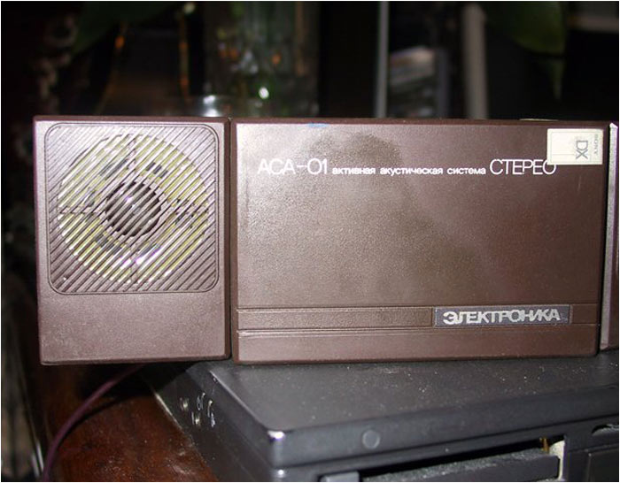 Активная акустическая система *Электроника АСА-01* с 1989 года выпускал Саратовский завод *Алмаз*. Миниатюрная ААС предназначена для усиления и воспроизведения стереофонических программ с малогабаритных источников сигнала звука, таких как переносные кассетные проигрыватели и радиоприёмники, где имеется выход звукового сигнала только на малогабаритные головные или на ушные телефоны. АСА воспроизводит полосу звуковых частот 500...5000 Гц. Номинальная выходная мощность 2х100 мВт. Питание 6 В. (4 элемента А-316). Время работы от комплекта батарей не менее 6 часов. Длина входного шнура 28,3 мм. Размеры АСА - 112х71х27 мм. Масса 140 гр. Выпускались АСА с улучшенными громкоговорителями, где диапазон эффективно воспроизводимых частот звука был расширен до 300...7000 Гц.
