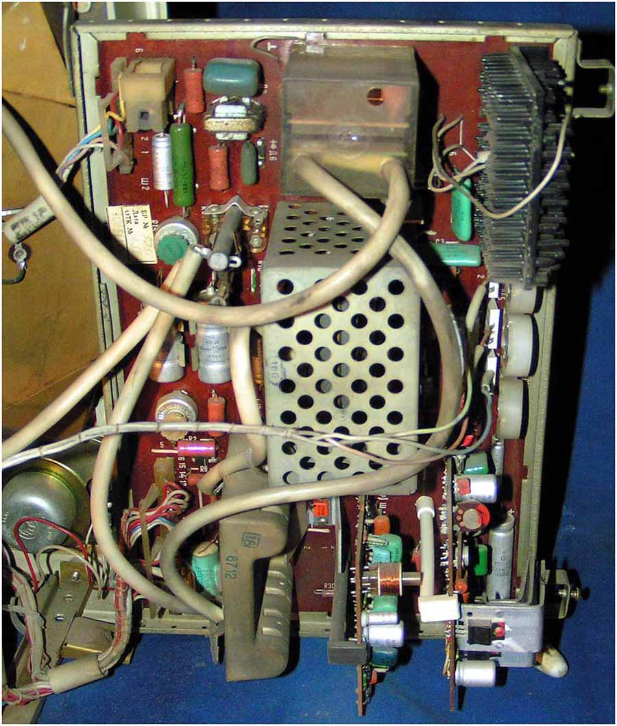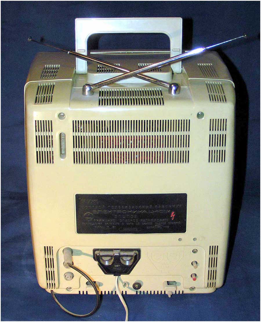 Телевизионный приёмник цветного изображения *Электроника Ц-401М* с I-кв 1984 года выпускал Московский электроламповый завод (МЭЛЗ). Модель **Электроника Ц-401М** - это переносной полупроводниковый телевизионный приёмник, выполненный с применением интегральных схем, выпускался в настольном оформлении с различными цветовыми вариантами отделки корпуса и передней панели. Для переноса в корпусе телевизора предусмотрена ручка. В модели примёнен кинескоп 32ЛК1Ц-1, с размером диагонали 32 см и углом отклонения электронного луча 90°. Телевизор обеспечивает приём телепередач цветного и ч/б изображения на любом из 12 каналов; прослушивание звукового сопровождения на головные телефоны с отключенной АС. В ТВ имеется АПЧГ, что обеспечивает переключение программ без регулировки. АРУ обеспечивает устойчивый сигнал. Влияние помех минимально благодаря АПЧ и Ф. Размер изображения - 182x244 мм. Чувствительность, ограниченная синхронизацией в МВ диапазоне - 55 мкВ, в ДМВ - 90 мкВ. Разрешающая способность: по горизонтали 300, по вертикали 350 линий. Номинальная выходная мощность канала звукового сопровождения 0,5 Вт. Диапазон воспроизводимых частот по звуковому давлению 250...7100 Гц. Телевизор питается от сети переменного тока напряжением 220 В. Колебания напряжения сети не должны превышать +5 -10% от номинального. Потребляемая мощность 95 Вт. Габариты телевизора 385x364x371 мм. Масса 17 кг.