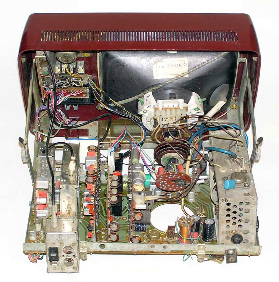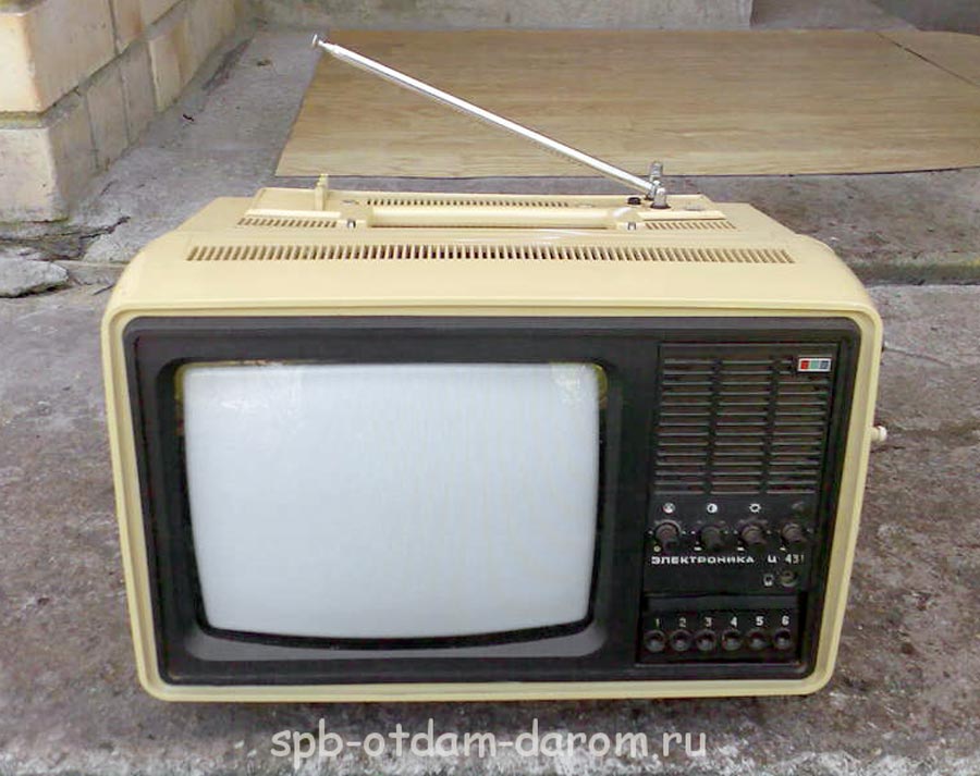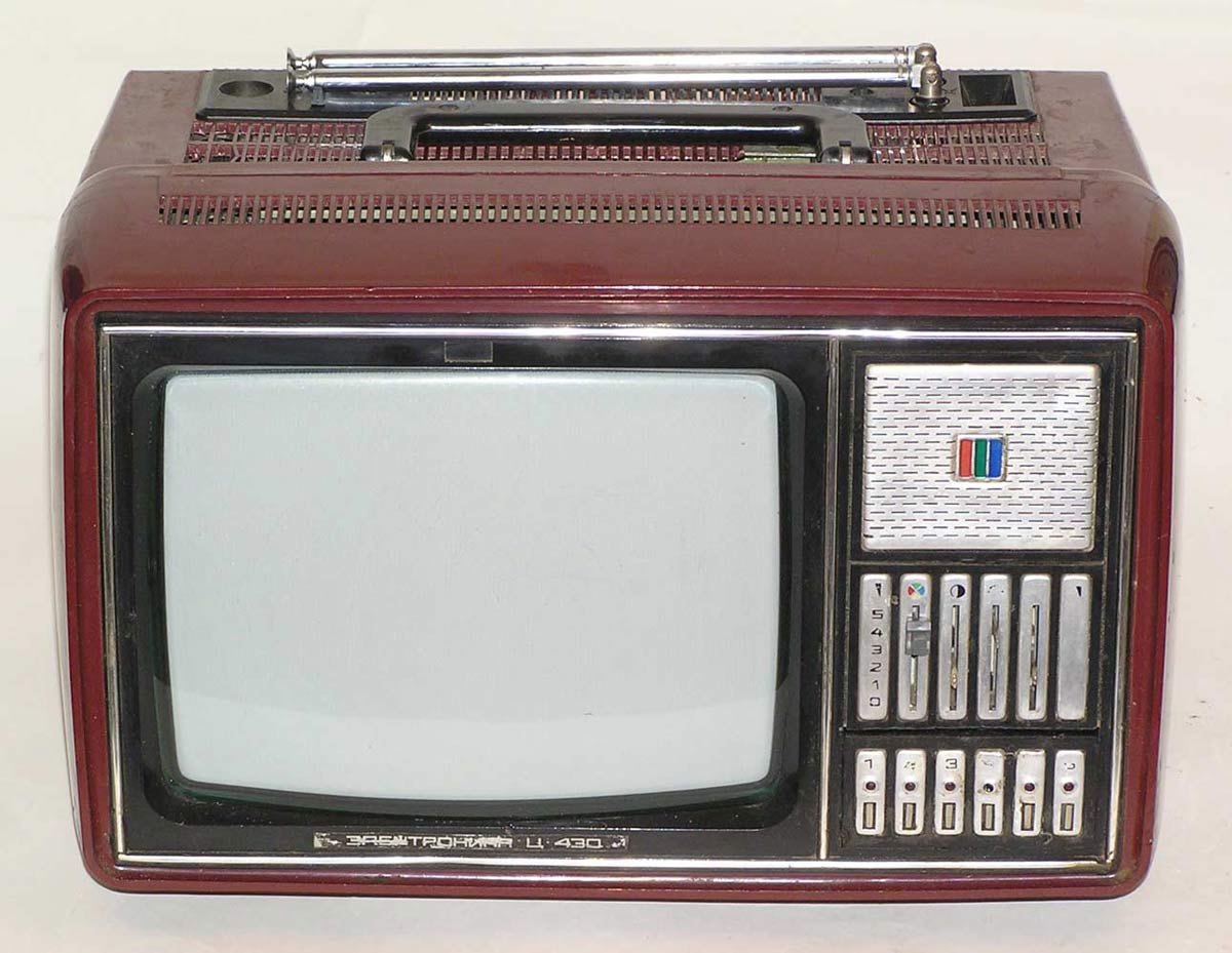 Телевизионный приёмник цветного изображения *Электроника Ц-430/Д* с 1977 года выпускали конденсаторный завод *Мезон* и НПО *Позитрон* в Ленинграде. Переносной телевизор цветного изображения **Электроника Ц-430/Д** предназначен для приёма программ на любом из 12 каналов в МВ диапазоне, а модель с индексом **Д** и на любом из каналов ДМВ диапазона. ТВ выпускались в корпусе из ударопрочного полистирола с разными вариантами оформления. В телевизоре применен кинескоп 25ЛК2Ц. Питание от сети переменного тока с напряжением 176...243 В или от источника постоянного тока напряжением 11...14,5 В. Есть возможность прослушивания звукового сопровождения на головные телефоны с отключенной АС, записи или воспроизведения изображения бытовыми отечественными видеомагнитофонами. В модели имеется системы АПЧГ, АРУ, АПЧ и Ф. Схема предусматривает автоматическое размагничивание экрана и маски кинескопа при включении. В блоке питания применена электронная схема защиты, автоматически отключающая телевизор от сети при возникновении перегрузок и включающая, при их прекращении. Чувствительность в диапазоне МВ 55 мкВ, ДМВ 200 мкВ. Разрешающая способность 250 линий. Максимальная выходная мощность 0,6 Вт. Диапазон воспроизводимых частот канала звукового сопровождения 315...6300 Гц. Потребляемая от сети мощность 50 Вт. Габариты телевизора - 362х245х275 мм. Его масса 8,7 кг. С 1980 года НПО *Позитрон* выпускал телевизор *Электроника Ц-431/Д* по схеме и конструкции аналогичный описанному, но отличающийся другим оформлением.