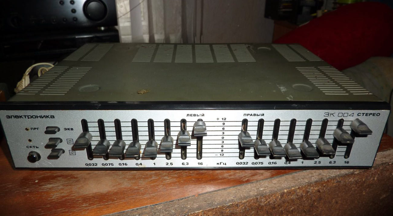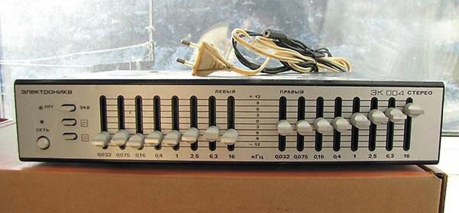 Графической эквалайзер *Электроника ЭК-004-стерео* выпускался с начала 1985 года. Графический эквалайзер *Электроника ЭК-004-стерео* позволяет корректировать нелинейность АЧХ электроакустического тракта звуковоспроизводящей радиоаппаратуры. Технические характеристики: Диапазон воспроизводимых частот 20...35000 Гц. Суммарный КНИ на частотах 40...16000 Гц - 0,02%. Отношение сигнал/шум 98 дБ. Количество регулируемых полос по каждому каналу 8. Диапазон регулировки АЧХ не менее ±72 дБ. Габаритные размеры эквалайзера 460x350х100 мм. Его масса не более 3,2 кг.