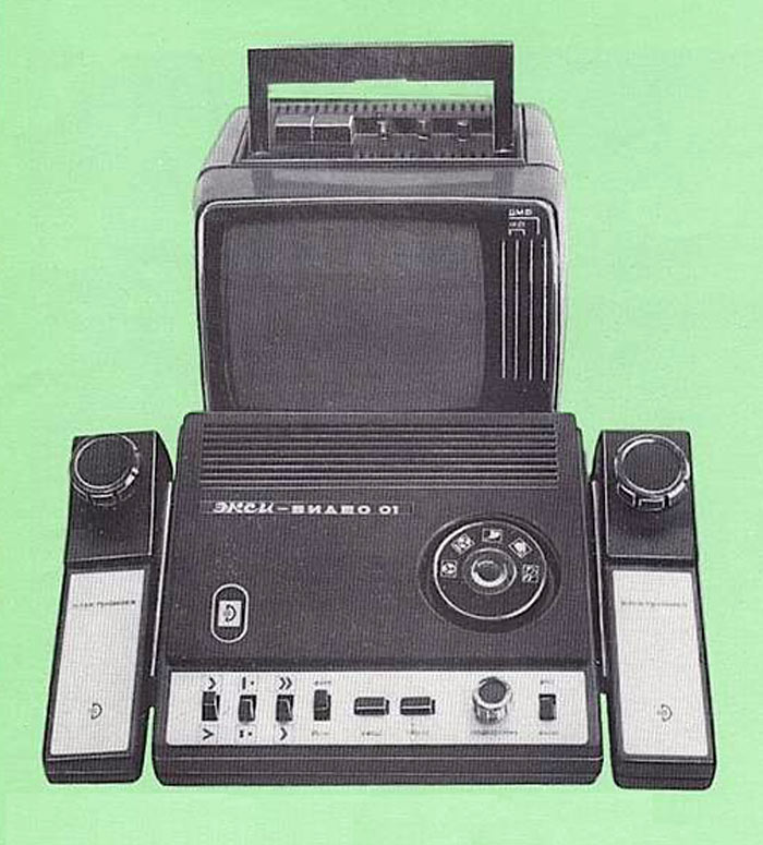 Телевизионная игровая приставка *Экси-Видео 01* выпускалась с I-кв 1978 года Павлово-Посадским заводом *Экситон*. Приставка воспроизводит на экране любого телевизионного приёмника различные игровые ситуации между двумя партнерами, так и между игроком и автоматическим партнером. Реализуемые игры: футбол, теннис, сквош, тренировка, футбол с гандикапом. Регулируемые параметры игр: размер ракеток, размер мяча, темп игры. Регистрация счёта автоматическая, очки до 15. Питание от сети переменного тока 220 В. выход на телевизор высокочастотный на 4-м или 5-м ТВ канале. Габариты приставки - 190х180х50 мм. Выносных пультов 180х50х45 мм. Блока питания 70х70х80 мм. Масса комплекта 2 кг. Цена приставки 90 рублей.