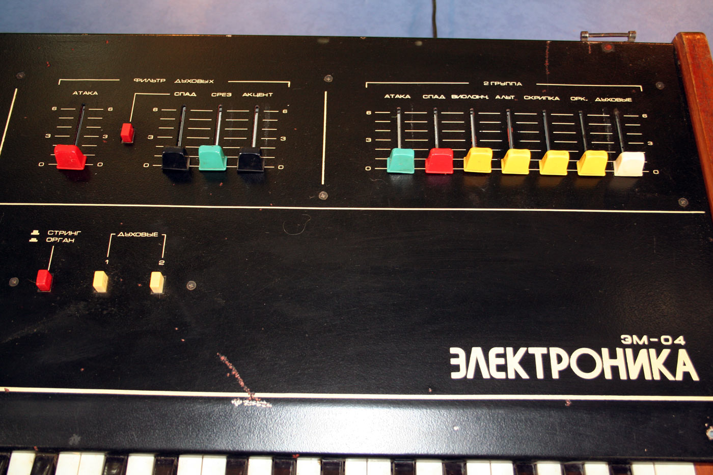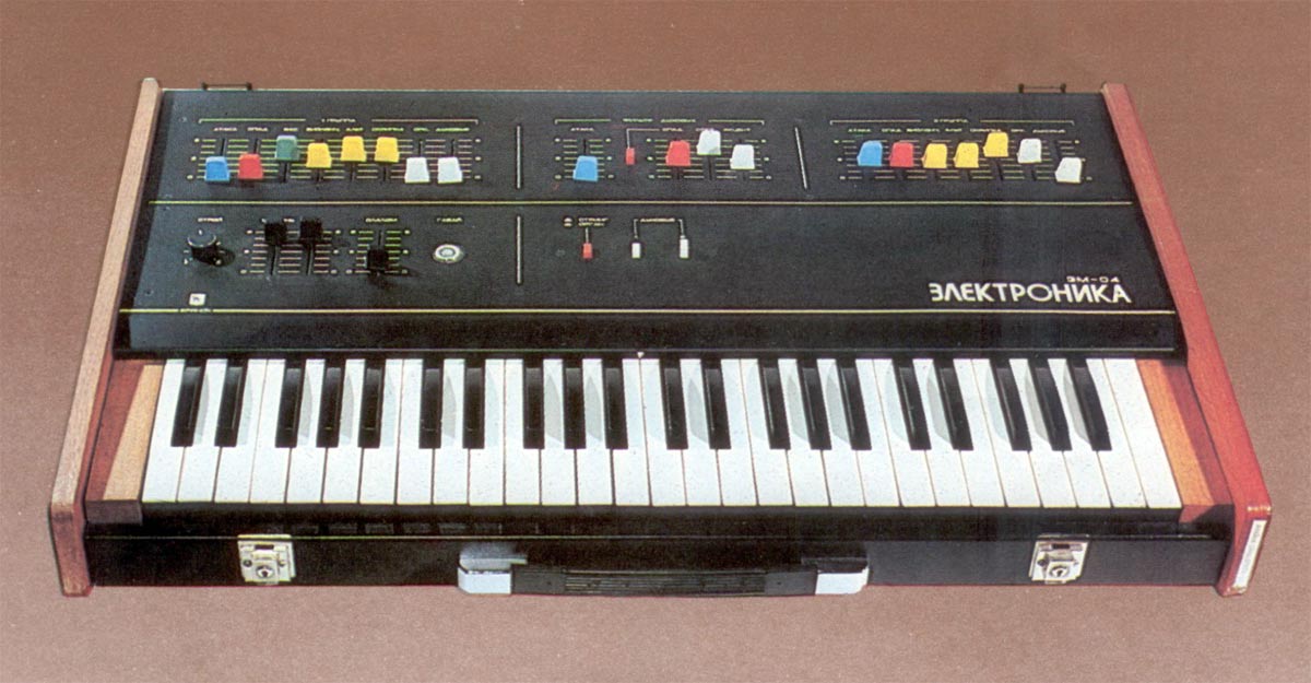 Многоголосный электронный музыкальный инструмент *Электроника ЭМ-04* выпускался возможно с 1986 года. Предназначен для исполнения произведений в составе ВИА и эстрадных оркестров. Это первый отечественный инструмент типа стринг-синтезатор, имитирующий звучание контрабаса, виолончели, скрипки, альта, духовых инструментов. Имеется регулировка громкости и тембра звучания соло и аккомпанемента. Задающий генератор инструмента позволяет смещать музыкальный строй на октаву и подстраивать его в пределах 1/4 тона. Полный звуковой диапазон 7-1/2 октавы; объём клавиатуры 4-1/2 октавы; количество хоров 10; количество перкуссионных регистров 7; количество синтезаторных регистров 7; уровень фона паузы -60 дБ. Потребляемая мощность 40 Вт. Габариты ЭМИ - 800х500х175 мм. Масса 23 кг. Цена ЭМИ - 1150 рублей.