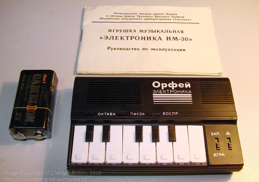 Детский электронный музыкальный инструмент *Электроника ИМ-30* (Орфей) предположительно с 1993 года выпускало Ленинградское объединение электронного приборостроения *Светлана*. ЭМИ питается от батареи типа *Корунд* напряжением 9 вольт. Есть возможность записи сыгранных мелодий с последующим воспроизведением. Другой информации нет.