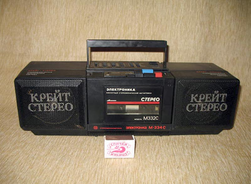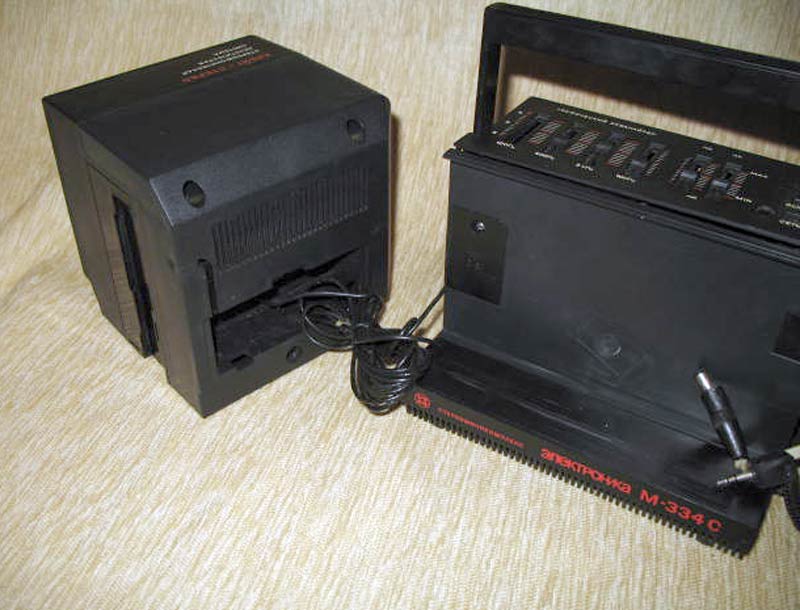 Стереофонический кассетный магнитофон *Электроника М-334С* (кенгуру) с 1989 года выпускал Нововоронежский завод *Алиот*. Магнитофон *Электроника М-334С* состоит из автономного малогабаритного кассетного магнитофона *Электроника М-332С* (вариант сделанный специально под данный аппарат), стереофонического усилителя, двух неразъёмных акустических систем и блока питания, объединённых в общем корпусе. Все характеристики, кроме выходной и потребляемой мощности соответствуют малогабаритному магнитофону *Электроника М-332С*.