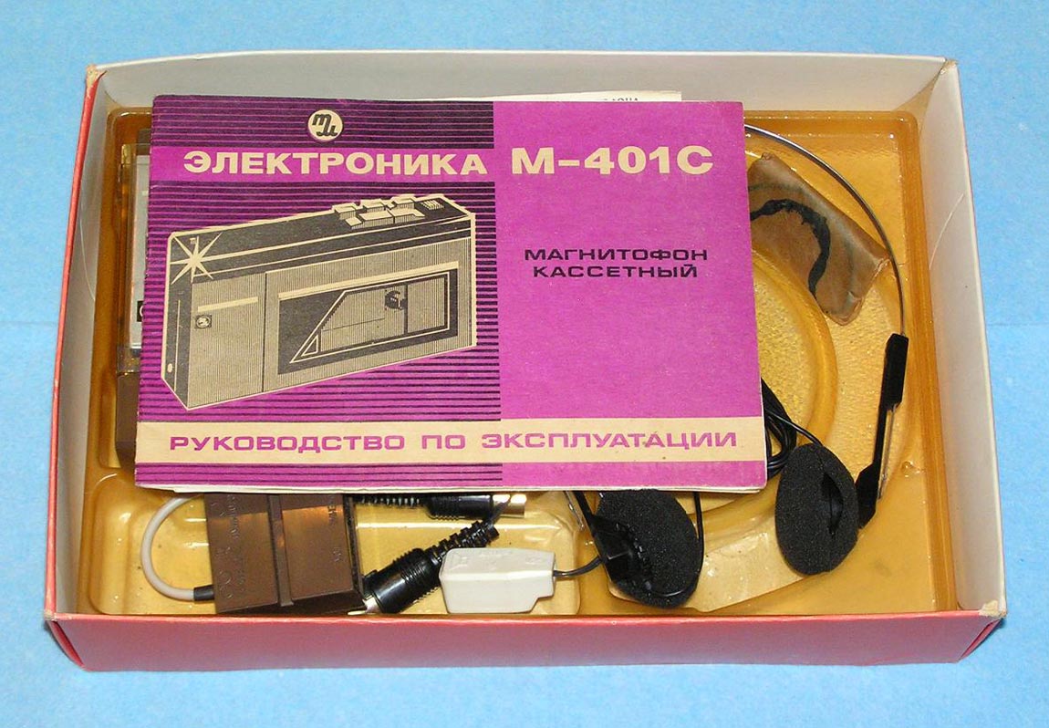 Портативный кассетный стереофонический магнитофон *Электроника М-401С* с 1988 года выпускал Зеленоградский завод ТочМаш. Мини-магнитофон 4 группы сложности с автономным питанием предназначен для записи или воспроизведения фонограм на магнитную ленту. Запись производится с применением АРУЗ. Воспроизведение осуществляется на стереофонические телефоны. Питание - 3 В. Диапазон рабочих частот 63...12500 Гц. Номинальная выходная мощность 2х3 мВт. Габариты модели - 145х32х88 мм. Вес 350 гр. Магнитофон является аналогом магнитофона *Электроника-мини стерео* выпускаемого заводом с 1986 года.