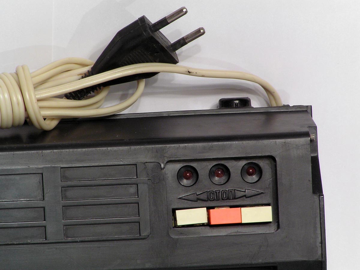 Перемотчик видеокассет *Электроника ПВ-01* выпускался с 1992 года. Перемотчик предназначен для перемотки видеокассет VHS после их просмотра.