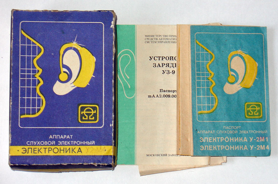 Аппарат слуховой электронный *Электроника У-2М1* или У-2М4 выпускался с 1990 года. Аппарат предназначен для компенсации слабых и средних потерь слуха. Акустическое усиление аппарата *Электроника У-2М1* - 50 дБ, *Электроника У-2М4* - 40 дБ. Уровень выходного звукового давления 90 и 86 дБ. Диапазон рабочих звуковых частот - 300...3000 Гц. Напряжение питания 1,2 В. Продолжительность непрерывной работы около 20 часов.