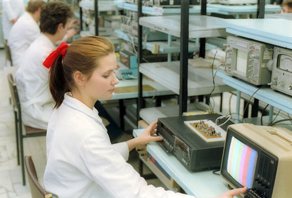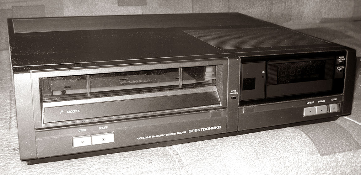 Цветной кассетный видеомагнитофон *Электроника ВМЦ-54* выпущен в 1990 году Ленинградским НПО *Позитрон*. В 1987 году был заключен договор о научно-техническом сотрудничестве и совместном производстве ВМ *Электроника ВМ-12* с фирмой *AVEX* (дочка Теслы). По этому договору по кооперации фирма *AVEX* поставляла ЛПМ, производимый по лицензии *Philips*, и корпусные детали ВМ, а ЛНПО *Позитрон* - комплект электронных блоков. В 1990 году в рамках договора в ЛНПО *Позитрон* были собраны 1000 ВМ марки *Электроника ВМЦ-54*. В следующем году фирма *AVEX* прекратила деятельность.