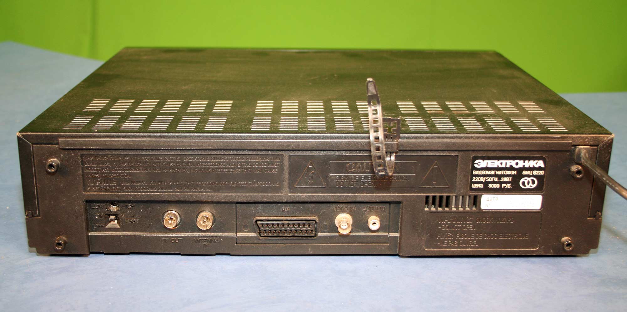 Кассетный видеомагнитофон *Электроника ВМЦ-8220* с 1987 года выпускал Воронежский завод *Видеофон*. Кассетный видеомагнитофон *Электроника ВМЦ-8220* - копия видеомагнитофона *Samsung VX-8220*. Видеомагнитофон позволяет: Воспроизведение ранее записанных видеокассет. Просмотр ТВ программы при одновременной записи другой программы. Запись и воспроизведение в течение четырёх часов на видеокассете типа Е-240. Запись программ с помощью таймера в течении 2 недель. Оперативную запись. Быстрый поиск изображения при перемотке вперед и обратной перемотке. Воспроизведение остановленного изображения. Дистанционное управление ВМ (22 команды). Частотно-синтезирующий тюнер принимает 69 каналов в варианте 6,5 МГц и 80 каналов в 5,5 МГц. ВМ имеет три автоматические системы: Автоматическое включение питания сети, автоматическое воспроизведение, автоматическая обратная перемотка). ВМ имеет повышенную четкость изображения с помощью системы HQ. Технические данные ВМ: Стандарт VHS. Система записи двумя вращающимися головками, наклонострочная. Телевизионная система CCIR, OIRT. Система цвета ПАЛ, СЕКАМ, МЕСЕКАМ. Ширина ленты 12,65 мм. Скорость движения ленты 23,39 мм/сек. Время записи (воспроизведения) 4 часа на кассете типа Е-240. Время перемотки не более 6 минут на кассете Е-180. Отношение сигнал/шум не менее 40 дБ. Разрешающая способность по горизонтали не менее 240 линий. Полоса воспроизводимых частот звука 100...8000 Гц. Каналы приёмника МВI, МВIII, ДМВ. Антенна - 75 Ом. Радиочастотный выход CCIR на ДМВ с 30 по 39 канал. Питание ВМ от электросети. Потребляемая мощность 28 Вт, в выключенном режиме 7 Вт. Габариты видеомагнитофона 420х345х93 мм. Масса 6,6 кг.