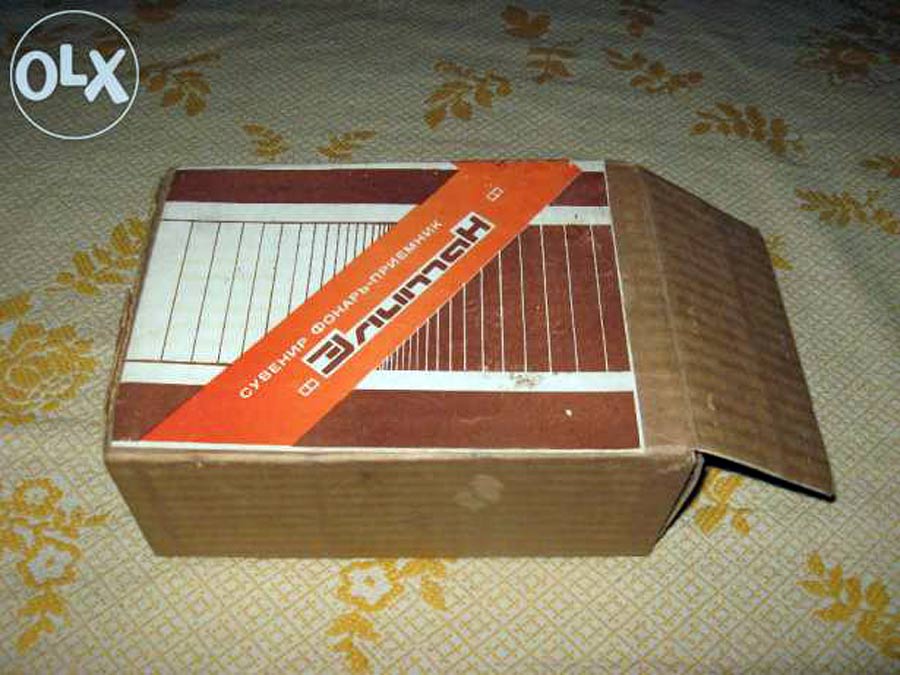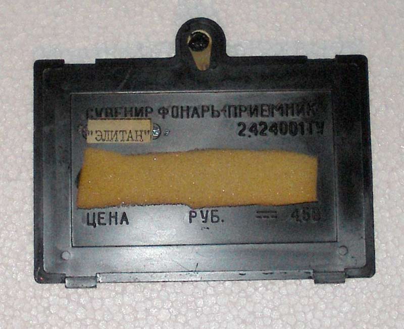 Сувенир фонарь-приёмник *Элитан* с 1989 года выпускало Харьковское ОАО *Элитан*. Информации нет, у кого есть пришлите пожалуйста! Из фотографий ясно что радиоприёмник работает в диапазоне средних волн. Имеется электронный регулятор яркости лампочки фонаря. Масса сувенира *Элитан* без батарей 0,7 кг.