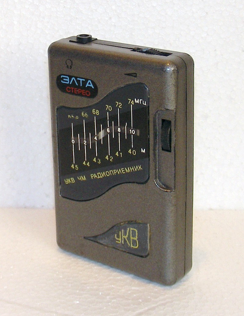 Портативный УКВ радиоприёмник *Элта-Стерео* выпускался с 1993 года. Приёмник предназначен для приёма стереофонических программ радиовещательных станций в УКВ-ЧМ диапазоне. Прослушивание осуществляется на головные стереофонические телефоны, провода которых служат одновременно и антенной. Питается приёмник от одной батареи типа АА. Номинальная выходная мощность 2х5, максимальная 2х25 мВт. Диапазон воспроизводимых звуковых частот на выходе для стереотелефонов 40...14000 Гц. Батареи достаточно на 50 часов непрерывной работы. Габариты приёмника 90х56х18 мм. Масса без батареи 50 гр.