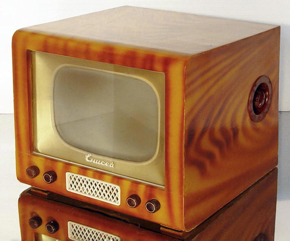 Телевизор *Енисей* с 1958 года выпускал Красноярский завод телевизоров. Телевизор предназначен для приёма телевизионных программ на любом из 5 телевизионных каналов, прослушивания ЧМ станций, а также грамзаписи с помощью от внешнего ЭПУ. Применено 17 радиоламп, 8 диодов, кинескоп 35ЛК2Б. Чувствительность 300 мкВ. Номинальная выходная мощность 1 Вт. Полоса воспроизводимых звуковых частот 100...6000 Гц. Питание от сети 127 или 220 вольт. Потребляемая мощность 145 Вт, при приёме ЧМ - 90 Вт. На лицевую панель выведены ручки громкости, яркости, тембра, контрастности и выключателя сети. Сзади на шасси находятся регуляторы линейности, размера, частоты кадров, строк, гнёзда антенн, звукоснимателя, сетевые предохранители, переключатель сети. Блок питания собран по автотрансформаторной схеме на диодах, поэтому заземление к телевизору подключать нельзя. Габариты модели - 415 х 450 х 525 мм. Масса 24 кг. Цена 192 рубля с 1961 года. Футляр деревянный, с имитацией ценных пород. Всего выпущено около 60 тысяч телевизоров *Енисей*. Радио №2/1966, ст.25 Нарушена кадровая синхронизация. Изображение перемещается по вертикали в такт со звуковым сопровождением. Во время пауз изображение устойчиво. При проверке оказалось, что узлы кадровой развертки и синхронизации полностью исправны. Причина неисправности заключалась в выходе из строя электролитического конденсатора С17—100 мкфХ20 в. После замены его телевизор стал работать нормально.