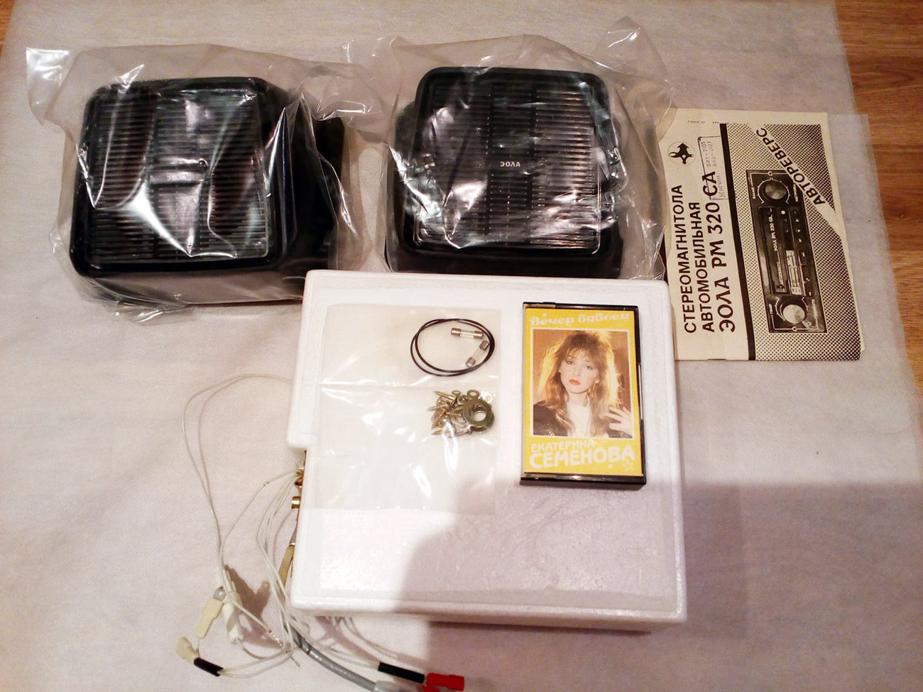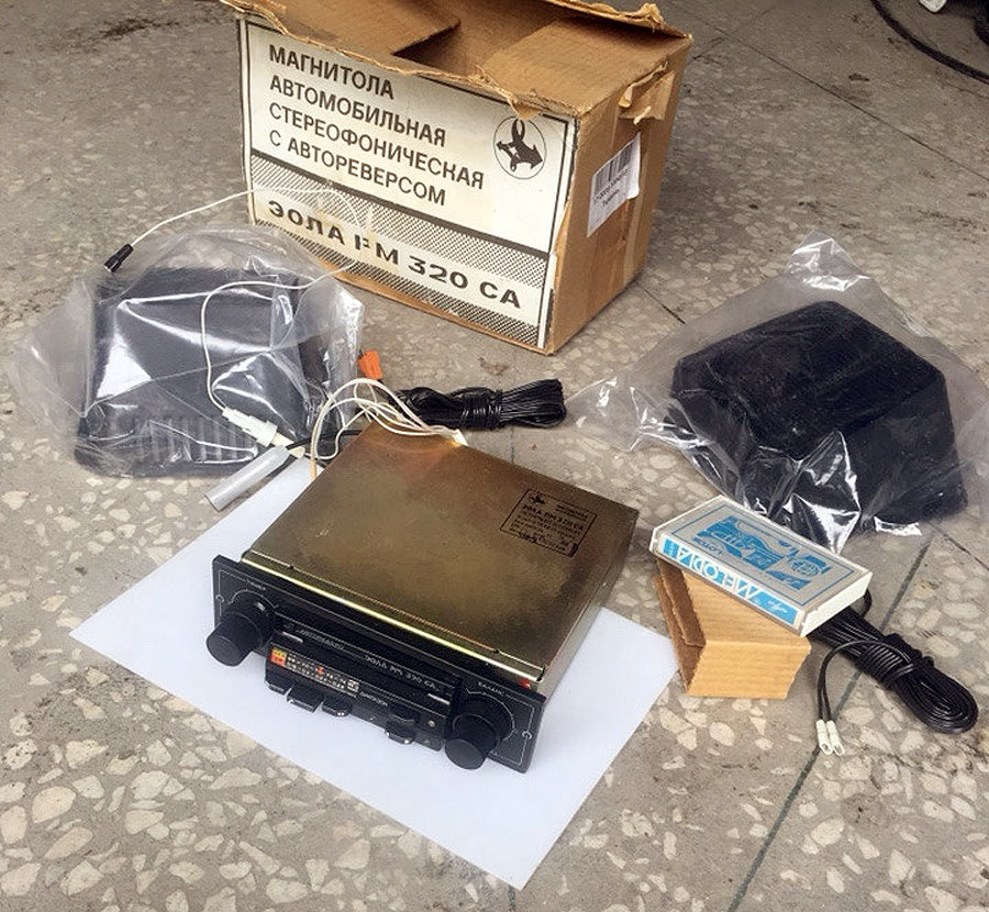 Автомобильная стереофоническая магнитола *Эола РМ-320СА* с 1988 года выпускалась Тамбовским заводом *Электроприбор*. Она предназначена для установки в автомобили **Москвич** и **Жигули** и позволяет производить приём радиостанций в диапазонах: ДВ, СВ и УКВ и воспроизводить моно и стереофонические фонограммы, размещенных в кассетах МК-60. Магнитола имеет АПЧ в диапазоне УКВ, плавную регулировку громкости, тембра ВЧ, баланса, перемотку ленты с фиксированным включением, индикацию направления движения ленты во время воспроизведения. Модель снабжена автореверсом, изменяющим направление движения ленты, при остановке ленты с переключением дорожек. Реверс включается и в ручном режиме. Чувствительность в диапазонах: ДВ 140, СВ 55; УКВ 4 мкВ. Селективность 36 дБ. Диапазон рабочих частот звука на АС: АМ 100...2000 Гц; ЧМ 80...10000 Гц; в режиме воспроизведения 63...10000 Гц. Cкорость ЛПМ 4,76 см/с. Коэффициент детонации 0,4%. Максимальная выходная мощность 4 Вт на канал. Питание от бортовой сети. Потребляемая мощность 18 Вт. Габариты модели 180х52х170 мм. Масса 2 кг. Масса АС 1,2 кг.
