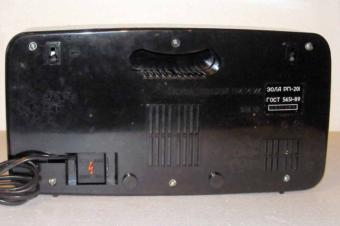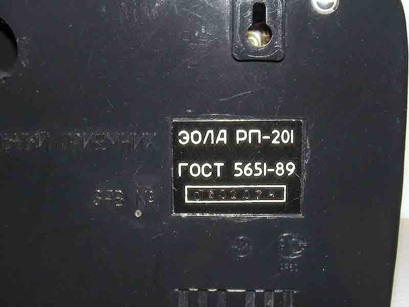 Стационарный транзисторный радиоприёмник *Эола РП-201* с I-кв 1993 года выпускал Тамбовский завод *Электроприбор*. *Эола РП-201* - монофонический УКВ-ЧМ радиоприёмник с четырьмя фиксированными настройками и питанием от электрической сети. Радиоприёмник обеспечивает приём радиовещательных станций в диапазоне УКВ. Возможно подключение магнитофона для записи и как усилителя НЧ. Предусмотрено подключение внешнего 12 вольтового питания. Технические характеристики: Диапазон принимаемых частот 65,8...74 МГц. Чувствительность, ограниченная шумами 10 мкВ. Избирательность по зеркальному каналу 30 дБ. Диапазон частот по звуковому давлению при неравномерности 14 дБ - 125...10000 Гц. Номинальная выходная мощность 1 Вт. Максимальная выходная мощность 2 Вт. Питание от сети переменного тока 50 Гц, 220 В. Потребляемая мощность не более 15 Вт. Габаритные размеры приёмника 320х165х100 мм. Масса 2 кг.