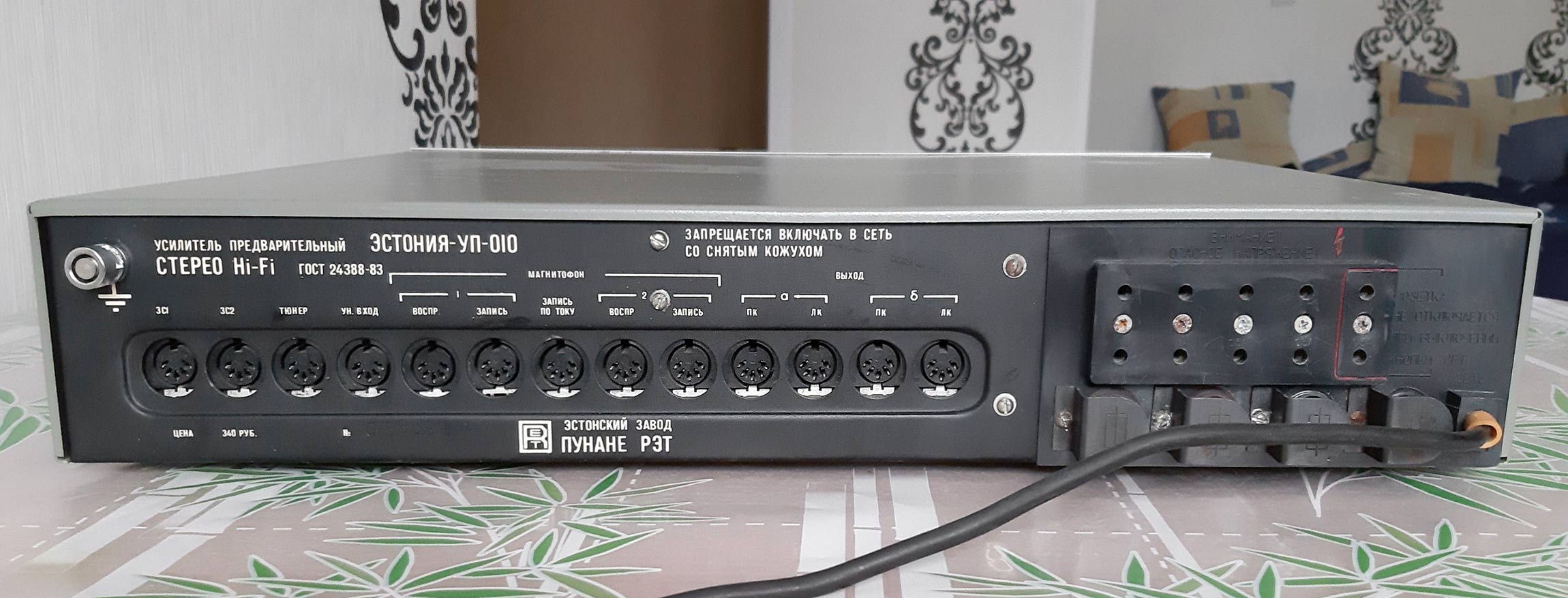 Стереофонический усилитель предварительный "Эстония-УМ-010-стерео" с 1987 года выпускал Таллиннский завод "Пунане-РЭТ". УМ предназначен для усиления сигналов 3Ч, поступающих от однотипного или другого предварительного усилителя. УМ имеет: светодиодные индикаторы режимов работы; электронную защиту от перегрузок; стереотелефоны; две пары АС. Номинальная выходная мощность 2х50 Вт, музыкальная 2х85 Вт. Диапазон воспроизводимых частот 20...25000 Гц. Коэффициент гармоник на частоте 1 кГц - 0,005%, 20 кГц 0,03%. Отношение сигнал/взвешенный шум 105 дБ. Переходное затухание между каналами 56 дБ. Потребляемая мощность 150 Вт. Габариты УМ - 460х360х80 мм. Масса 12,2 кг.