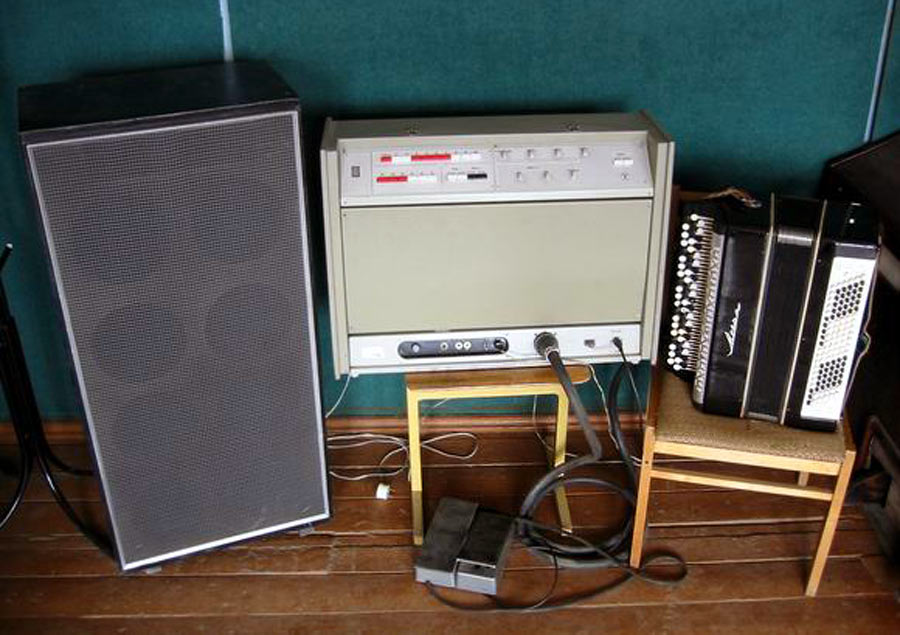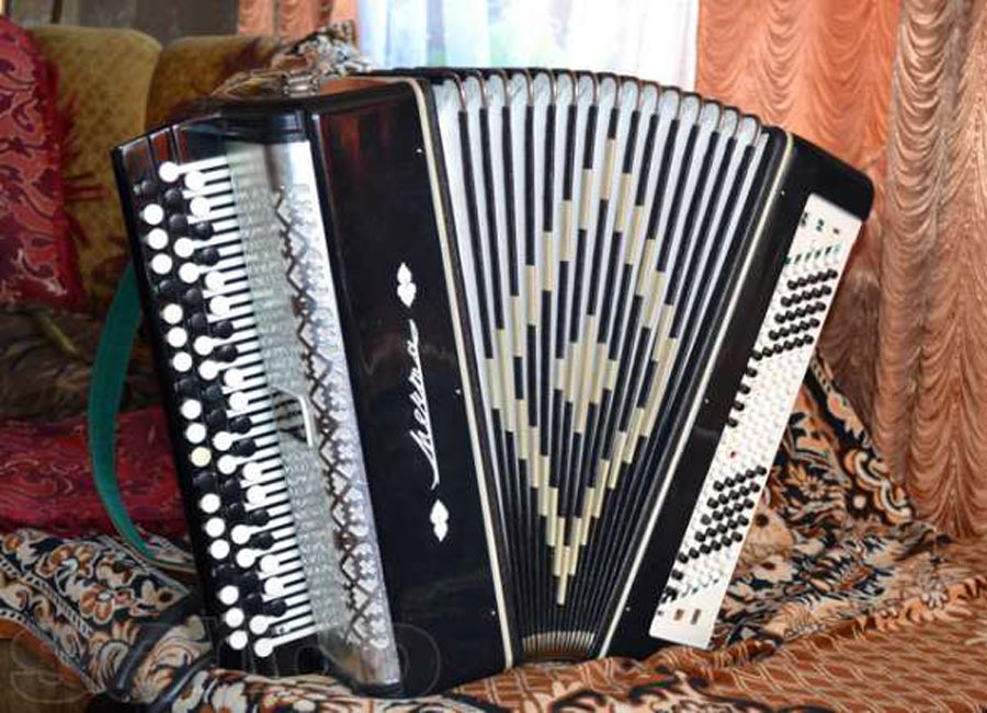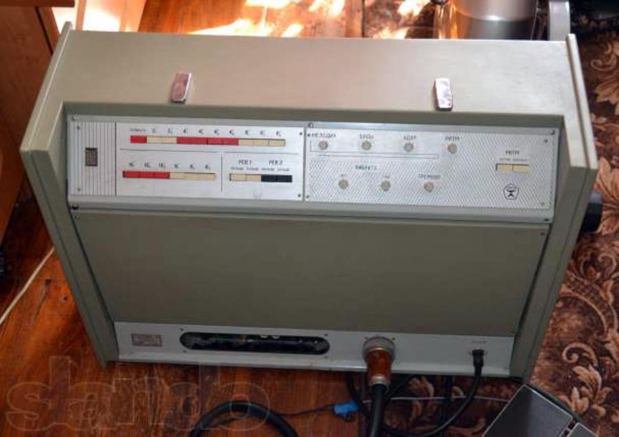 Электронный баян *Эстрадин-8Б* с 1971 года выпускал Житомирский завод *Электроизмеритель*. Баян построен на базе обычного механического баяна, имеющего 61 клавишу и 120 кнопок басов и готовых аккордов. Баян, у которого сохранены язычковые резонаторы, электрически соединен с электронным блоком и акустическими агрегатами. Сохранение свойста обычного баяна позволяет сохранить технику игры на нём и использовать соответствующую музыкальную литературу для обучения и исполнения произведений различных жанров. Кроме этого, возможно чередующееся и совместное звучание электронного и обычного голосов. Регулировки регистрами, тембрами, характером амплитудной огибающей звука и другими эффектами расположены на электронном блоке, а некоторые наиболее часто используемые органы управления, размещены непосредственно на баяне. Баян имеет: диапазон основных тонов 6,3 октавы (от фа контр-октавы до соль четвертой октавы); 5 октавных регистров в правой клавиатуре и 3 регистра в левой; частотное вибрато, регулируемое по глубине и частоте; музыкальные эффекты - тремоло, глиссандо, ударные, реверберацию, регулировку атаки, тутти-орган; выходную мощность 25 Вт. Размеры электронного блока 830x500x250 мм. Два акустических блока баяна содержат по четыре громкоговорителя типа 4ГД-28. Цена комплекта 1400 рублей. За годы выпуска было две модернизации блока и акустических агрегатов.