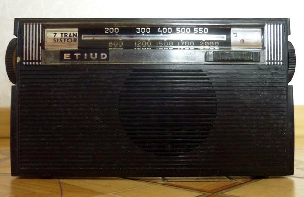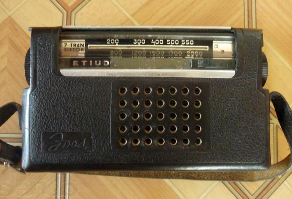 Портативный транзисторный радиоприёмник *Этюд* с 1967 года выпускал Минский радиозавод. Приёмник собран на 7 транзисторах и 3-х диодах и работает в диапазонах ДВ и СВ. Отличается от других бестрансформаторным усилителем. Небольшие размеры приёмника 136х76х24 мм и вес 250 грамм, ставят его в разряд действительно карманных. Источник питания - батарея Крона. Реальная чувствительность в диапазоне ДВ - 2 мВ/м, СВ - 1,2 мВ/м. Избирательность по соседнему каналу 16 дБ, по зеркальному 26 дБ. Максимальная выходная мощность 100 мВт. КНИ 3%. В приёмнике применён громкоговоритель 0,1ГД-9. Приём осуществляется на магнитную антенну, с возможностью подключения внешней антенны. Время работы от свежей батареи 50 часов. В 1968 году приёмник модернизирован при прежнем наименовании. Об этом варианте в справочнике Белова, Дрызго.