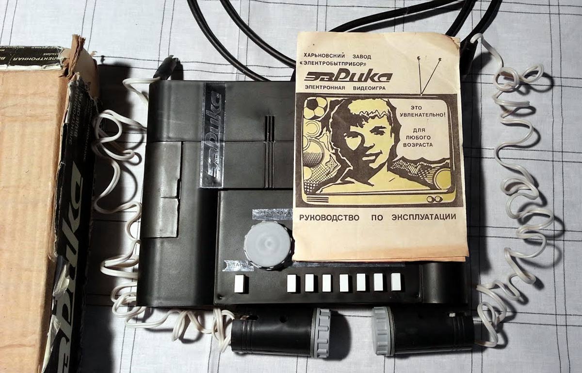 Электронная видеоигра *Эврика* выпускалась с 1989 года Харьковским заводом *Электробытприбор*. Предназначена для имитации на экране чёрно-белого или цветного телевизора пяти спортивных игр: Футбол, Теннис, Волейбол, Сквош, Хоккей. В любую игру может играть один или два человека. Телевизионный сигнал сформирован для просмотра на четвёртом или пятом канале телевизора. Питается приставка от 6 элементов А-373. Габариты приставки 300 х 260 х 65 мм, выносного пульта 90 х 50 мм. Масса без питания 1 кг.