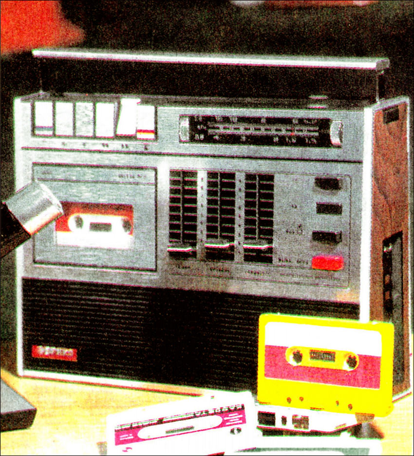 Переносная кассетная магнитола *Эврика-402* с 1975 года выпускалась Арзамасским приборостроительным заводом имени 50-летия СССР. Магнитола предназначена для радиоприёма в диапазонах ДВ, СВ и для записи фонограмм с микрофона, звукоснимателя, внешнего и внутреннего радиоприёмника, магнитофона, радиолинии и других устройств, с последующим воспроизведением фонограмм через встроенные громкоговорители. Одномоторный ЛПМ рассчитан на применение кассеты МК-60. Скорости движения магнитной ленты 4,76 и 2,38 см/с. Коэффициент детонации 0,4 и 1,5%. Электронные узлы магнитолы выполнены на 6 интегральных микросхемах и 7 транзисторах. Магнитола обеспечивает: контроль уровня записи стрелочным индикатором; раздельную регулировку уровней записи и воспроизведения; автоматическое регулирование уровня записи; блокировку кассет от ошибочного стирания фонограмм. Номинальная выходная мощность усилителя магнитолы 0,4 Вт. Диапазон рабочих звуковых частот на линейном выходе на большей скорости 80...8000 Гц, на меньшей 80...3150 Гц. На встроенных громкоговорителях нижний предел частот начинается с 200 Гц. Питается магнитола от шести элементов А-343 или от сети переменного тока, через встроенный блок питания. Размеры магнитолы 226х304х84 мм. Масса 3,5 кг. Цена 200 рублей.