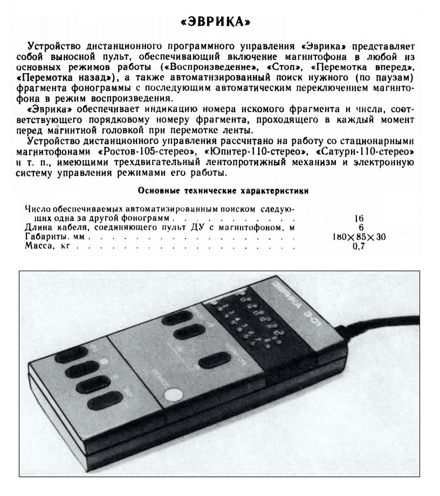 Устройство дистанционного программного управления *Эврика Э-01* (позднее *Эврика*) с 1985 года выпускал Ижевский электромеханический завод.