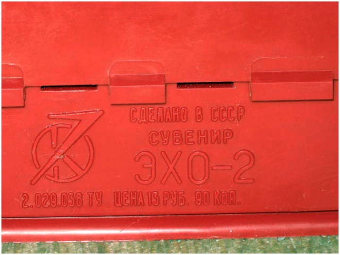 Сувенирный радиоприёмник *Эхо* с 1976 года выпускал Московский радиотехнический завод. Радиоприёмник собран на семи транзисторах по схеме прямого усиления и выпускался в нескольких вариантах оформления. Приёмник работает в диапазоне СВ (186,9...541,4 м) и питается от двух батарей *3336Л*. Включение приёмника (до 1978 года) происходило вращением рупора к краю **диска**, затем регулятором громкости совмещённым с выключателем. С 1978 года завод выпускал приёмник *Эхо-2* с более современной элементной базой и немного изменённой схемой и конструкцией. С 1979 года завод выпускал приёмник *Эхо-Олимпийский* аналогичный модели *Эхо-2*. Цена моделей: 13 рублей 90 копеек (Эхо-2), 19 рублей 70 копеек (Эхо) и 24 рубля (Эхо-Олимпийский). Олимпийский вариант часто именовался просто *Эхо*.