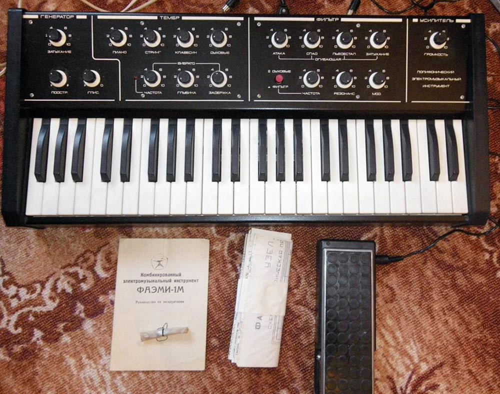 Полифонический аналоговый синтезатор *Фаэми-1М* с 1983 года выпускал Качканарский радиозавод. Синтезатор имеет 4 октавную клавиатуру. В основе синтеза используется один задающий генератор, генератор инфранизкой частоты, фильтр низкой частоты, усилитель. Панель управления разделена на пять секций: генератор, тембр, вибрато, фильтр, усилитель. Ручки контроля: секция ГЕНЕРАТОР: затухание, подстройка, глиссандо, секция ТЕМБР: пиано, стрингс, клавесин, духовые, секция ВИБРАТО (генератор ИНЧ): частота, глубина, задержка, секция ФИЛЬТР: атака, спад, пьедестал, затухание, частота, резонанс, модуляция, секция УСИЛИТЕЛЬ: громкость.