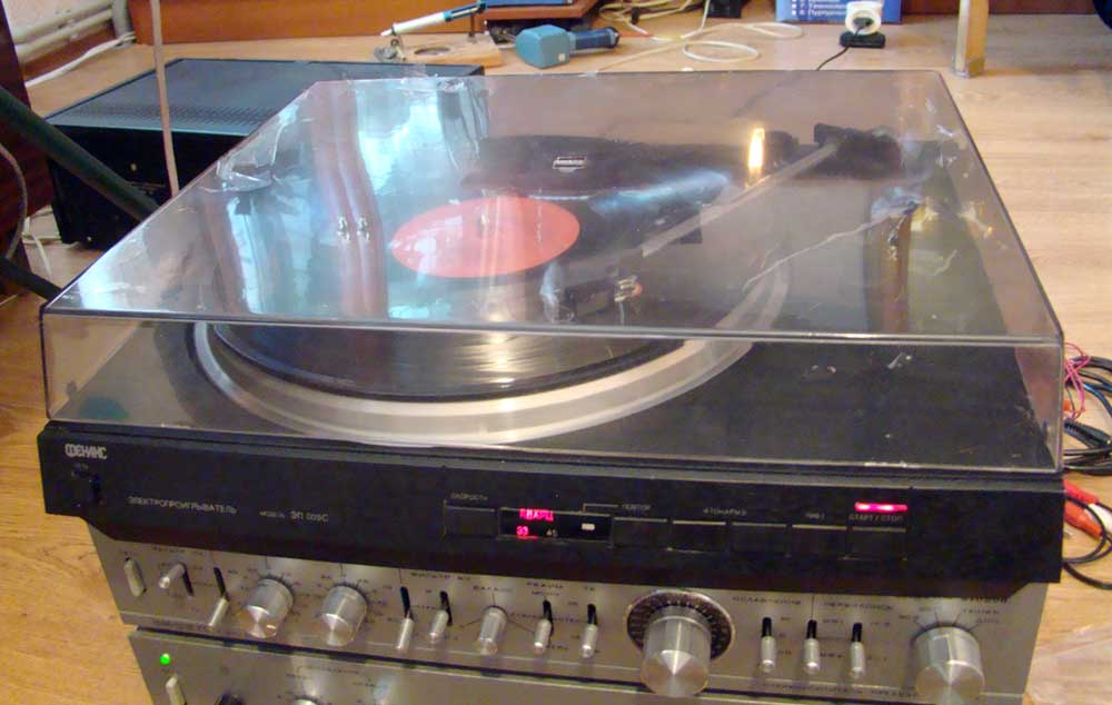Электропроигрыватель *Феникс ЭП-009-стерео* с начала 1986 года выпускал Львовский завод телеграфной аппаратуры. Стереофонический электропроигрыватель высшей группы сложности **Феникс ЭП-009-стерео** имеет 2-х скоростное ЭПУ с прямым приводом и предназначен для высококачественного воспроизведения стерео и монофонических записей с грампластинок. Он может работать с усилителем звуковой частоты любого типа имеющий вход для подключения магнитоэлектрического звукоснимателя. В модели установлена магнитоэлектрическая головка ГЗМ-055, с алмазной иглой, обеспечивающая высокое качество воспроизведения и минимальный износ пластинок. Для устранения влияния скатывающей силы тонарм имеет устройство компенсации. ЭП имеет устройство автоматической установки иглы звукоснимателя на вводную канавку грампластинки и возврат тонарма на стойку после окончания проигрывания. В модели применены: микропроцессорное управление с записью логики работы в ПЗУ, автостоп, микролифт, регулятор прижимной силы, устройство компенсации скатывающей силы, неотключаемая кварцевая стабилизация частоты вращения диска, автоматическая установка тонарма на вводные канавки всех стандартных грампластинок, возвращение тонарма в исходное положение, многократное проигрывание пластинки, ручного управления перемещением тонарма с квазисенсорной панели управления при закрытой крышке аппарата. Напряжение питания 220 В. Частота вращения диска 33, 45, об/мин. Коэффициент детонации ЭПУ - 0,05%. Отношение сигнал/рокот со взвешивающим фильтром - 76 дБ. Отношение сигнал/фон - 70 дБ. Диапазон регулирования прижимной силы 0...20 мН. Потребляемая мощность 15 Вт. Габариты проигрывателя - 430x130x370 мм. Масса 7 кг.