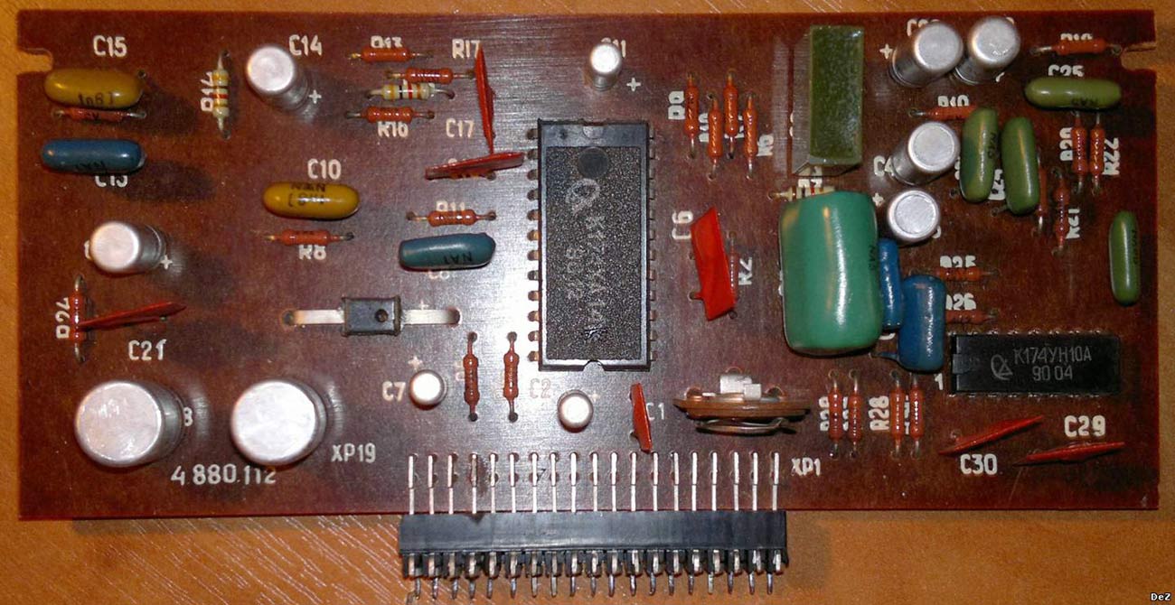 Радиоконструктор *Фон-7* с 1989 года выпускал Московский завод *Эллинг*. Набор *Фон-7* обеспечивает выделение стереосигнала и его фильтрацию. Этот узел собран на микросхемах К174ХА14 (стереодекодер) и К174УН10А (фильтры). Применение МС позволило получить очень высокие эксплуатационные характеристики: переходное затухание между каналами 30 дБ и подавление поднесущей частоты на выходах каналов 50 дБ. Отношение сигнал/шум 50 дБ. Потребляемый ток 60 мА. Используя набор вместе с наборами *Фон-6*, *Фон-8*, *Фон-9*, Фон-10* и *Фон-11* можно собрать высококачественный стереофонический УКВ-ЧМ приёмник.